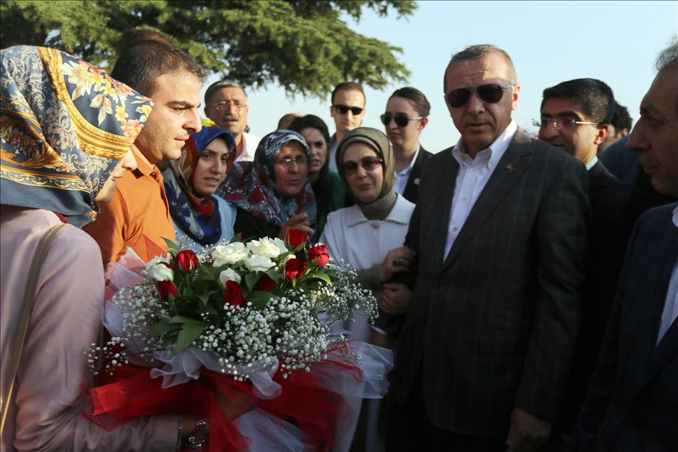 Cumhurbaşkanı adayı ve Başbakan Recep Tayyip Erdoğan, seçim kampanyası için geldiği Diyarbakır'da 1990'lı yıllarda yaşanan olaylar nedeniyle mağdur olan ailelerle görüştü. Diyarbakır Havalimanı'na gelen 4 aile, çözüm sürecinin barışla nihayete erdirilmesini istediklerini dile getirerek, Başbakan Erdoğan'a kırmızı ve beyaz gül verdi. (Sema Kaplan - Anadolu Ajansı)Sema Kaplan