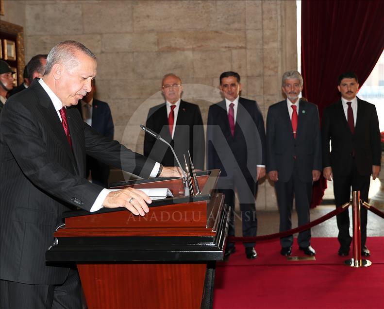 Cumhurbaşkanlığı Hükümet Sistemi'nin ilk Cumhurbaşkanı Recep Tayyip Erdoğan, Anıtkabir'i ziyaret etti. Erdoğan, Anıtkabir özel defterini imzaladı. ( Kayhan Özer - Anadolu Ajansı )Kayhan Özer