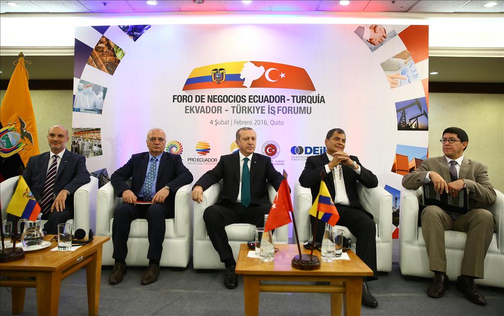 Cumhurbaşkanı Recep Tayyip Erdoğan, Ekvadaor'un başkenti Kito'da Ekvador Devlet Başkanı Rafael Correa ile "Ekvador-Türkiye İş Forumu"na katıldı. Foruma Ekonomi Bakanı Mustafa Elitaş ve Dış Ekonomik İlişkiler Kurulu (DEİK) Başkanı Ömer Cihad Vardan da katıldı. ( Kayhan Özer - Anadolu Ajansı )Kayhan Özer