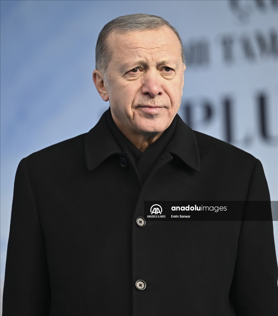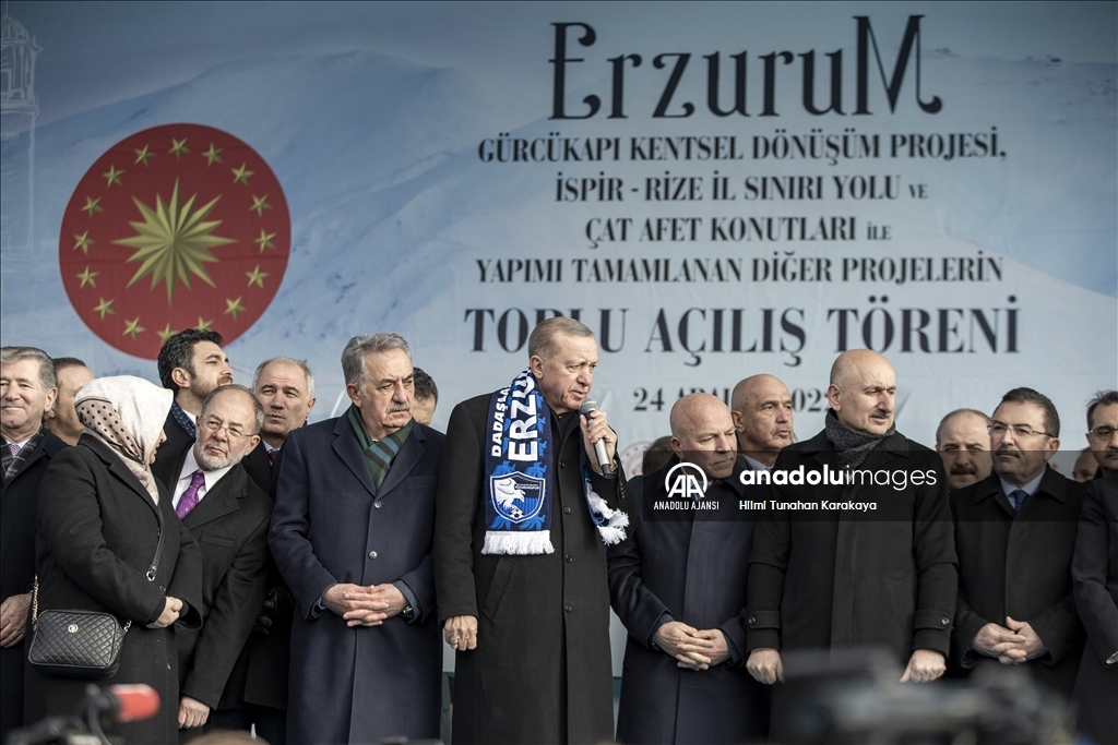 Cumhurbaşkanı Recep Tayyip Erdoğan, Erzurum'da yeni miting alanında, Gürcükapı Kentsel Dönüşüm Projesi, İspir-Rize İl Sınırı Yolu ve Çat Afet Konutları ile yapımı tamamlanan diğer projelerin toplu açılış törenine katıldı. ( Emin Sansar - Anadolu Ajansı )Emin Sansar