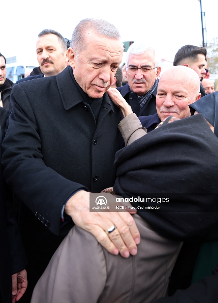 Cumhurbaşkanı Recep Tayyip Erdoğan, Erzurum yeni miting alanında, Gürcükapı Kentsel Dönüşüm Projesi, İspir-Rize İl Sınırı Yolu ve Çat Afet Konutları ile yapımı tamamlanan diğer projelerin toplu açılış törenine katıldı. Erdoğan, programa gelişinde bir vatandaşla sohbet etti. ( TCCB / Murat Çetinmühürdar - Anadolu Ajansı )TCCB / Murat Çetinmühürdar