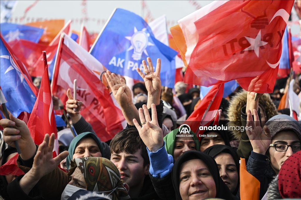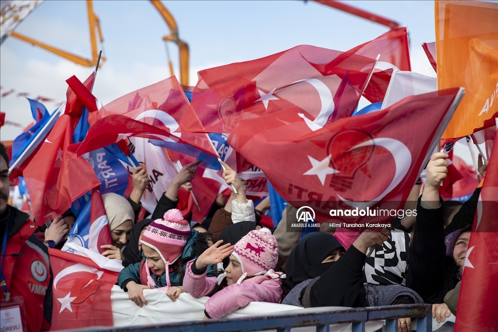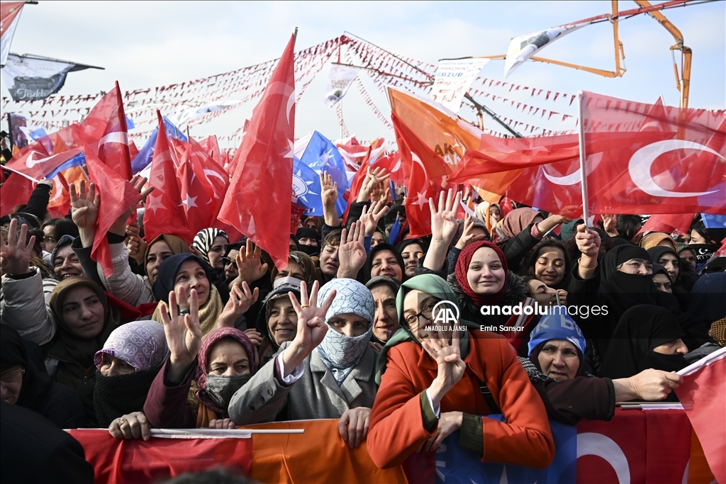 Cumhurbaşkanı Recep Tayyip Erdoğan, Erzurum'da yeni miting alanında, Gürcükapı Kentsel Dönüşüm Projesi, İspir-Rize İl Sınırı Yolu ve Çat Afet Konutları ile yapımı tamamlanan diğer projelerin toplu açılış törenine katılarak konuşma yaptı. ( Emin Sansar - Anadolu Ajansı )Emin Sansar