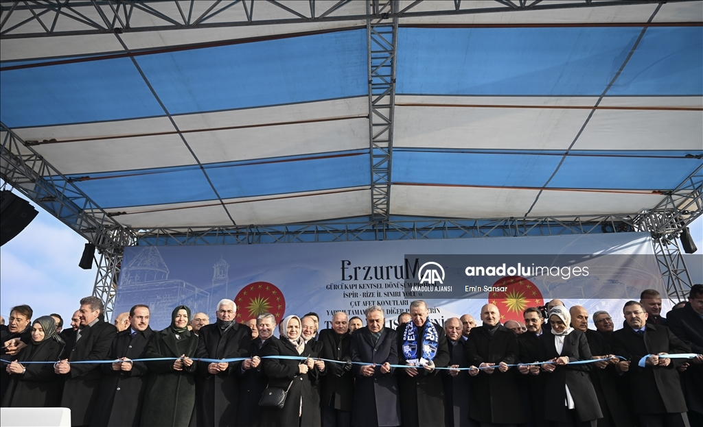 Cumhurbaşkanı Recep Tayyip Erdoğan, Gürcükapı Kentsel Dönüşüm Projesi, İspir-Rize İl Sınırı Yolu ve Çat Afet Konutları ile yapımı tamamlanan diğer projelerin toplu açılış törenine katılmak üzere Erzurum'a geldi.