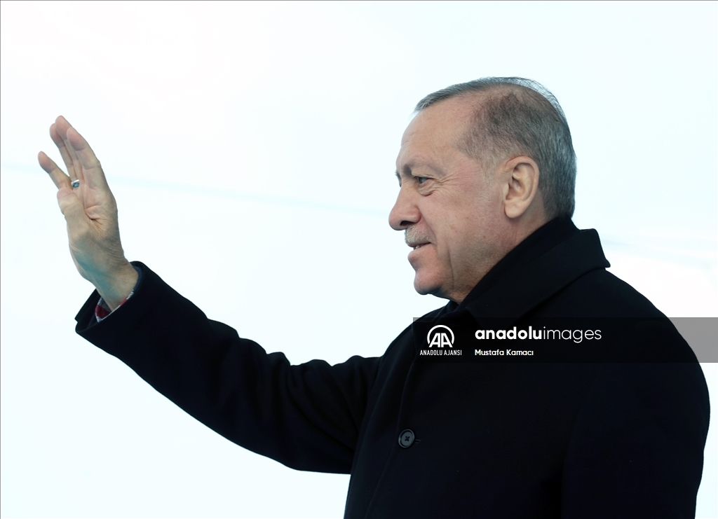 Cumhurbaşkanı Recep Tayyip Erdoğan, Erzurum'da yeni miting alanında, Gürcükapı Kentsel Dönüşüm Projesi, İspir-Rize İl Sınırı Yolu ve Çat Afet Konutları ile yapımı tamamlanan diğer projelerin toplu açılış törenine katılarak konuşma yaptı. ( Hilmi Tunahan Karakaya - Anadolu Ajansı )Hilmi Tunahan Karakaya