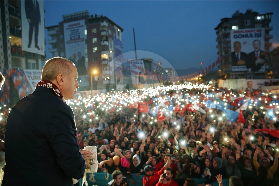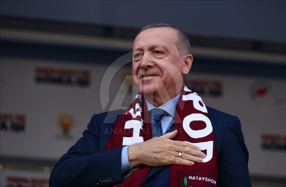 Türkiye Cumhurbaşkanı ve AK Parti Genel Başkanı Recep Tayyip Erdoğan, partisi tarafından Hatay İtfaiye Meydanı'nda düzenlenen mitinge katıldı. Vatandaşlar mitinge ilgi gösterdi. ( Cumhurbaşkanlığı/Murat Çetinmühürdar - Anadolu Ajansı )Cumhurbaşkanlığı/Murat Çetinmühürdar