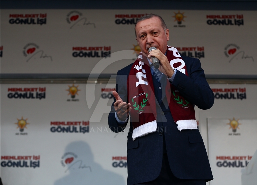 Türkiye Cumhurbaşkanı ve AK Parti Genel Başkanı Recep Tayyip Erdoğan, partisi tarafından Hatay İtfaiye Meydanı'nda düzenlenen mitinge katıldı. Erdoğan burada konuşma yaptı. ( İbrahim Erikan - Anadolu Ajansı )İbrahim Erikan