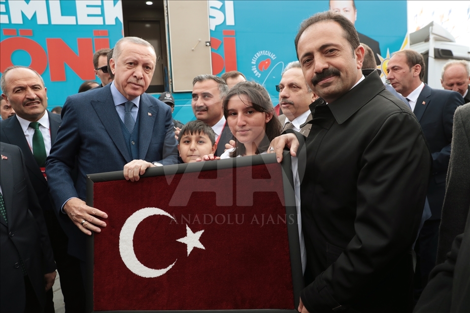 Türkiye Cumhurbaşkanı ve AK Parti Genel Başkanı Recep Tayyip Erdoğan, partisince Kayseri'de düzenlenen mitinge katıldı. Program sonrasında Erdoğan'a Türk Bayrağı takdim edildi. ( Cumhurbaşkanlığı / Murat Çetinmühürdar - Anadolu Ajansı )Cumhurbaşkanlığı / Murat Çetinmühürdar