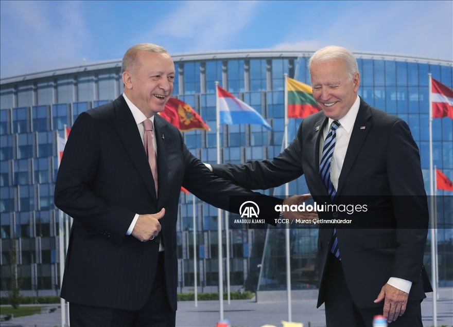 Türkiye Cumhurbaşkanı Recep Tayyip Erdoğan'ın, NATO Zirvesi kapsamında ABD Başkanı Joe Biden ile görüşmesi başladı. ( TCCB / Murat Çetinmühürdar - Anadolu Ajansı )TCCB / Murat Çetinmühürdar