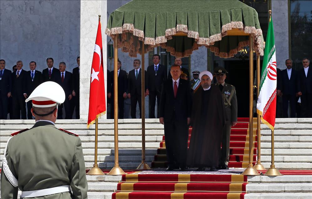 Cumhurbaşkanı Recep Tayyip Erdoğan, İran'a gerçekleştirdiği günübirlik resmi ziyaret kapsamında, İran İslam Cumhuriyeti Cumhurbaşkanı Hasan Ruhani tarafından askeri törenle karşılandı. Törenin ardından Cumhurbaşkanı Erdoğan ve Ruhani baş başa görüştü. (Kayhan Özer - Anadolu Ajansı)Kayhan Özer