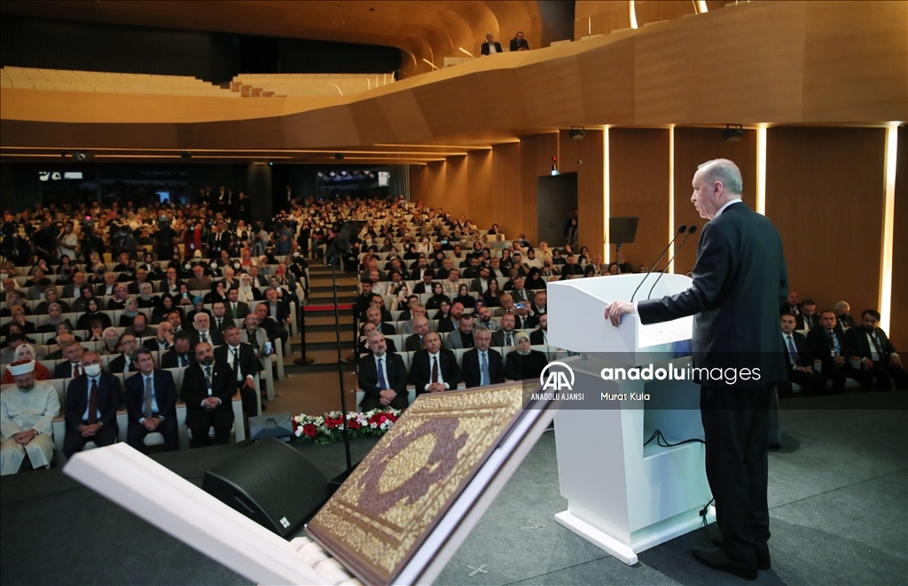 Cumhurbaşkanı Recep Tayyip Erdoğan, Büyük Çamlıca Camisi Konferans Salonu'nda düzenlenen İstanbul Mushafı'nı Takdim ve Tanıtım Programı'na katılarak konuşma yaptı.