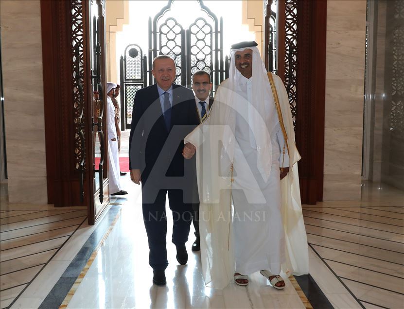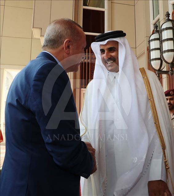 Türkiye Cumhurbaşkanı Recep Tayyip Erdoğan, Katar'ın başkenti Doha'da, Katar Emiri Şeyh Temim bin Hamad Al Sani ile bir araya geldi.