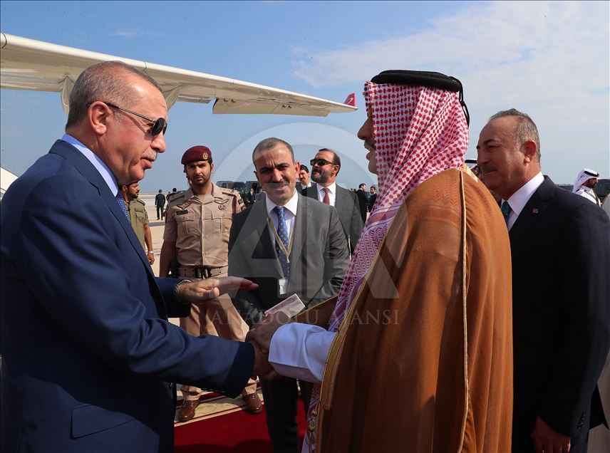Türkiye Cumhurbaşkanı Recep Tayyip Erdoğan, özel uçak "TUR" ile saat 12.40'ta Katar'ın başkenti Doha'ya geldi. Cumhurbaşkanı Erdoğan, Doha Hamad Uluslararası Havalimanı'nda Katar Başbakan Yardımcısı ve Savunma Bakanı Halid bin Muhammad el-Atiyye ve Türkiye'nin Doha Büyükelçisi Fikret Özer ile büyükelçilik yetkilileri tarafından karşılandı. ( Cumhurbaşkanlığı / Murat Çetinmühürdar - Anadolu Ajansı )Cumhurbaşkanlığı / Murat Çetinmühürdar