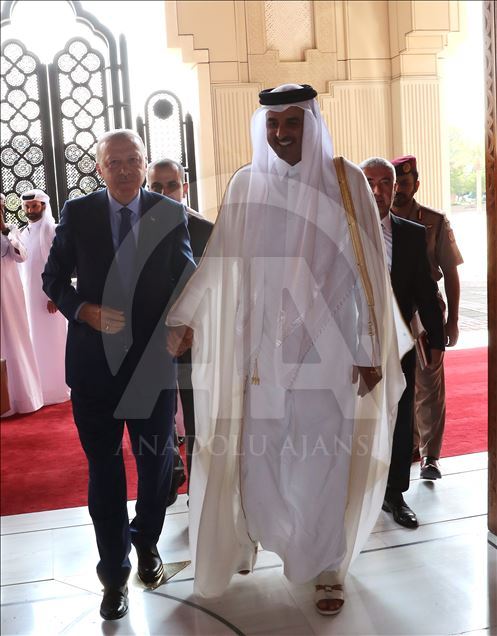 Türkiye Cumhurbaşkanı Recep Tayyip Erdoğan, Katar'ın başkenti Doha'da, Katar Emiri Şeyh Temim bin Hamad Al Sani ile bir araya geldi. ( Cumhurbaşkanlığı / Mustafa Öztartan - Anadolu Ajansı )Cumhurbaşkanlığı / Mustafa Öztartan