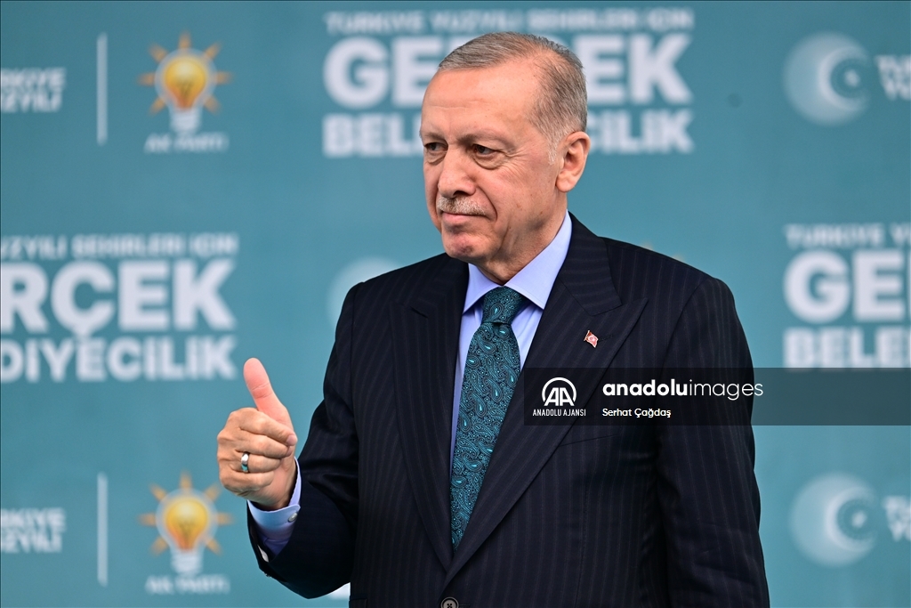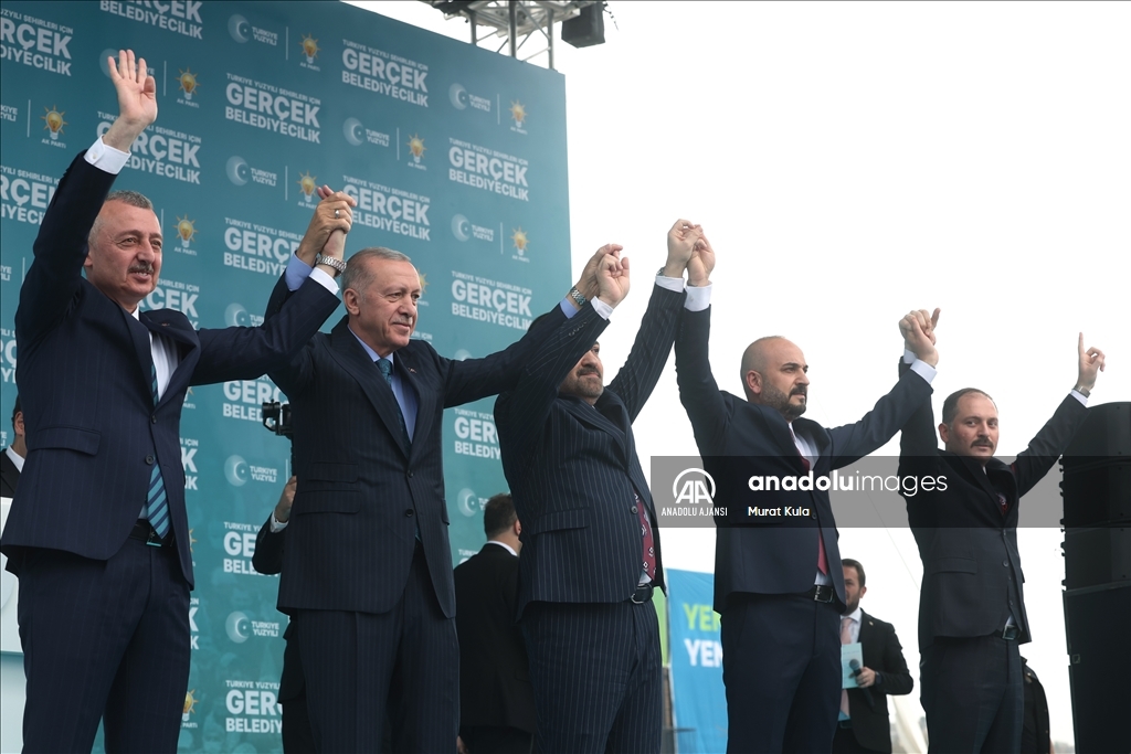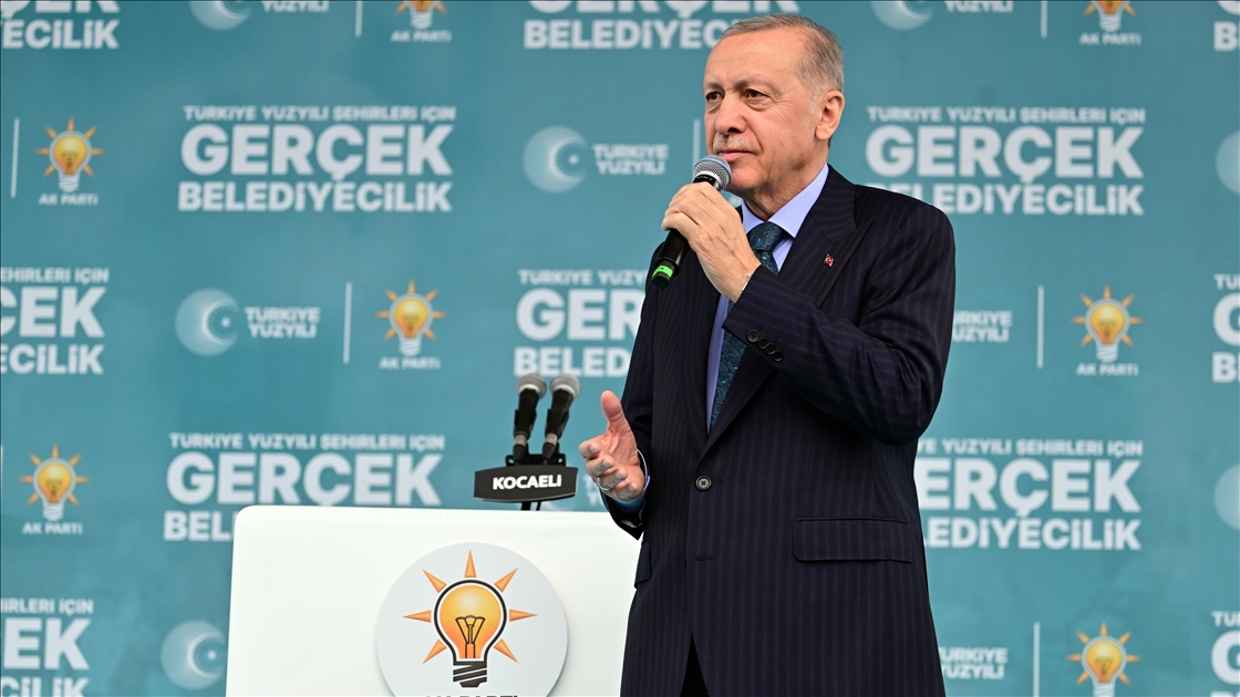 Cumhurbaşkanı ve AK Parti Genel Başkanı Recep Tayyip Erdoğan, partisinin Kocaeli Kongre Merkezi Miting Alanı'nda düzenlediği mitinge katıldı. Cumhurbaşkanı Erdoğan, il ve ilçe belediye başkan adayları ile birlikte vatandaşları selamladı.