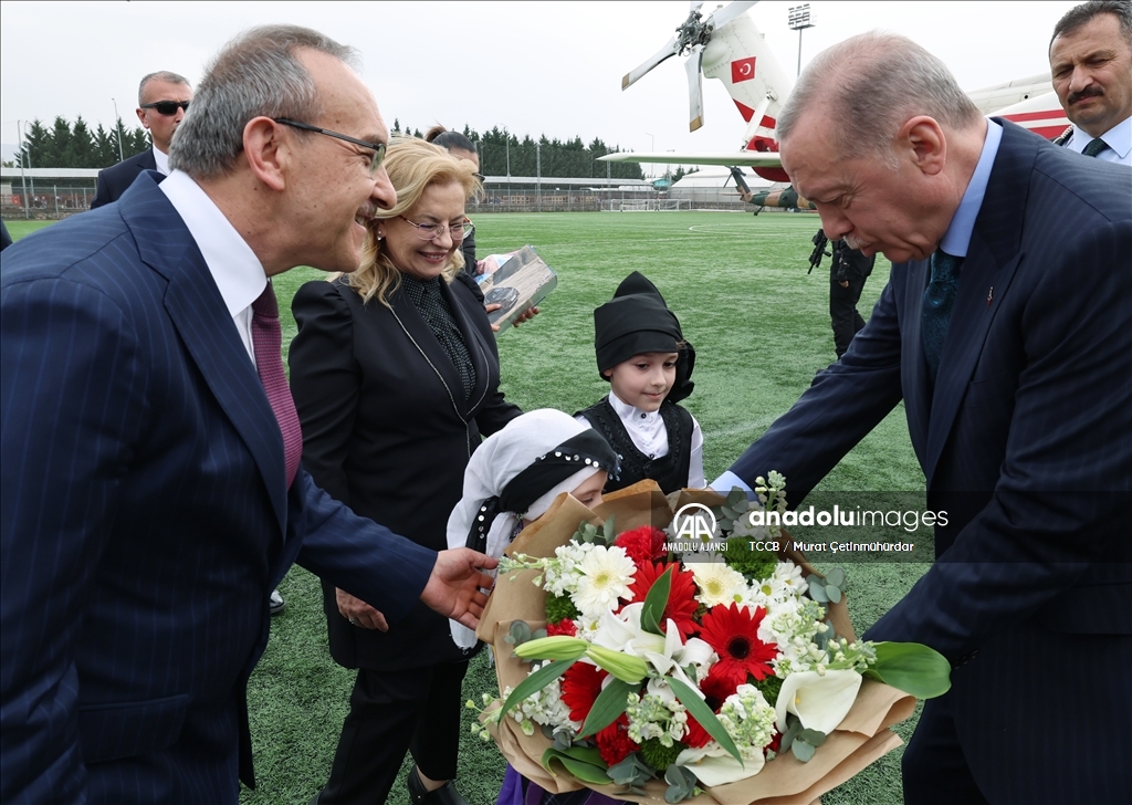 Cumhurbaşkanı ve AK Parti Genel Başkanı Recep Tayyip Erdoğan, partisinin Kocaeli Kongre Merkezi Miting Alanı'nda düzenleyeceği mitinge katılmak üzere kente geldi. Erdoğan, burada Vali Seddar Yavuz (solda) ve yöresel kıyafetli çocuklar tarafından çiçekle karşılandı. ( TCCB / Murat Çetinmühürdar - Anadolu Ajansı )TCCB / Murat Çetinmühürdar