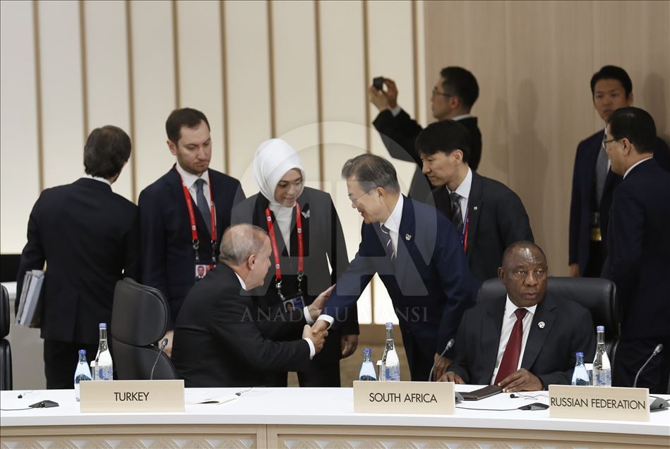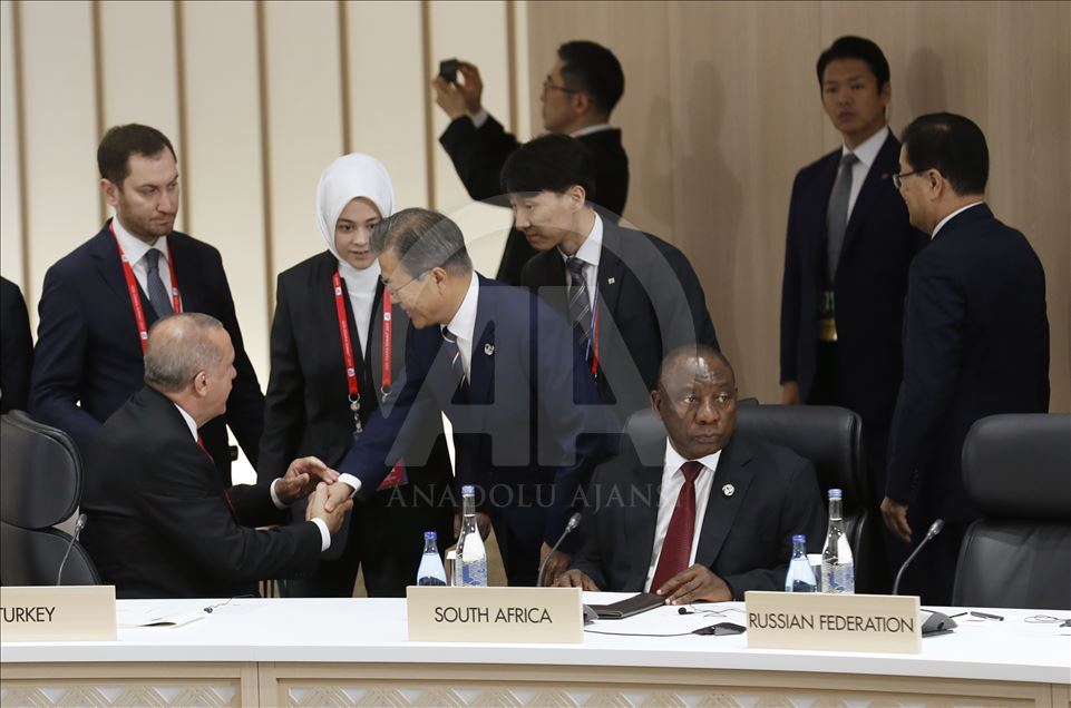 Türkiye Cumhurbaşkanı Recep Tayyip Erdoğan, Japonya'nın Osaka kentinde devan eden G20 Zirvesi’nin ikinci gününde başlıklı üçüncü oturuma katıldı. ( Cumhurbaşkanlığı / Murat Çetinmühürdar - Anadolu Ajansı )Cumhurbaşkanlığı / Murat Çetinmühürdar