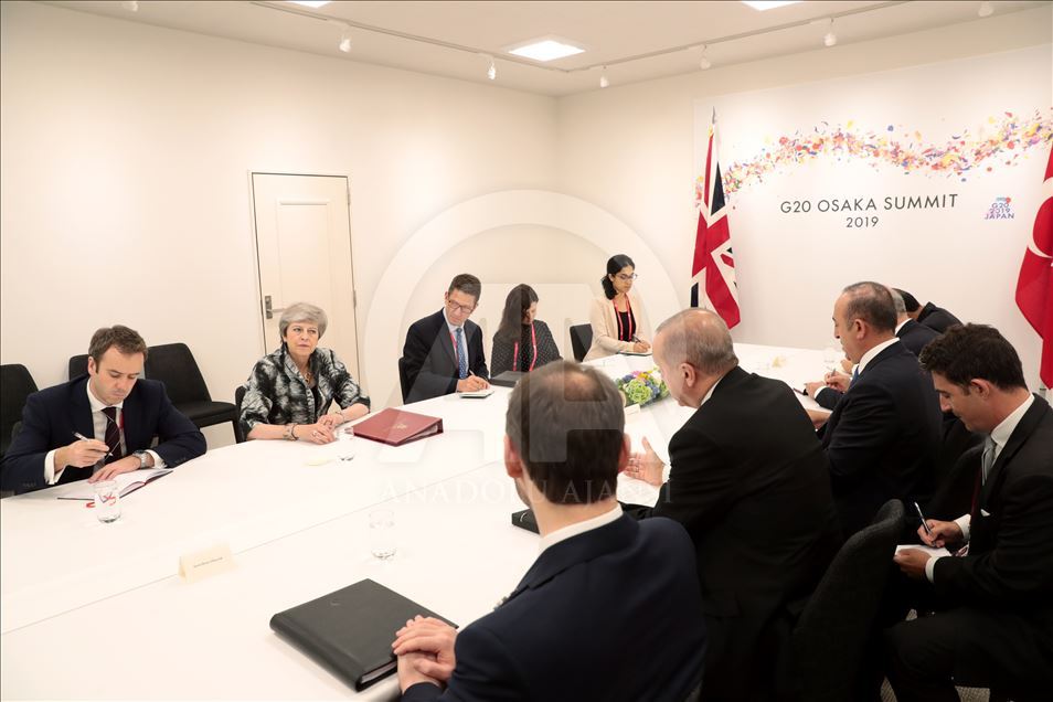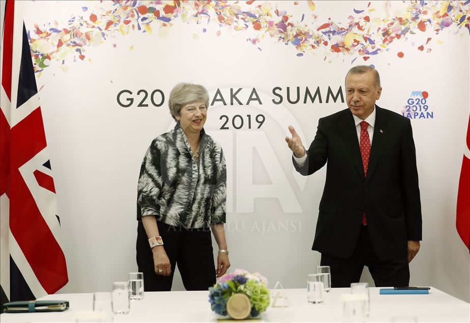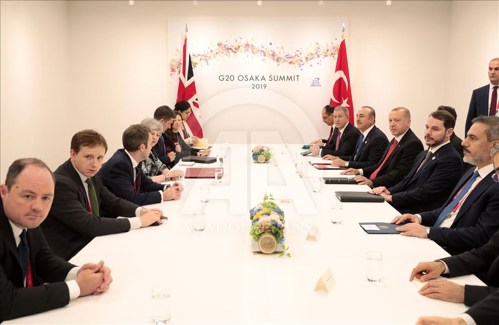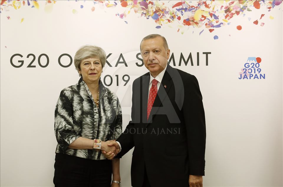 Türkiye Cumhurbaşkanı Recep Tayyip Erdoğan, G20 Liderler Zirvesi kapsamında INTEX Osaka Fuar Merkezi’nde İngiltere Başbakanı Theresa May ile görüştü. ( Cumhurbaşkanlığı / Murat Çetinmühürdar - Anadolu Ajansı )Cumhurbaşkanlığı / Murat Çetinmühürdar