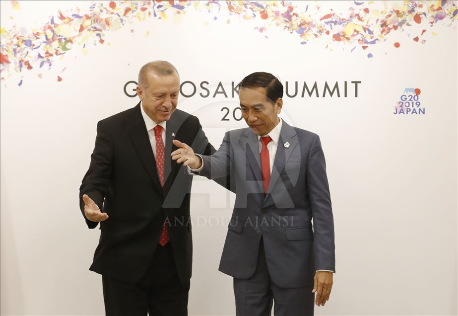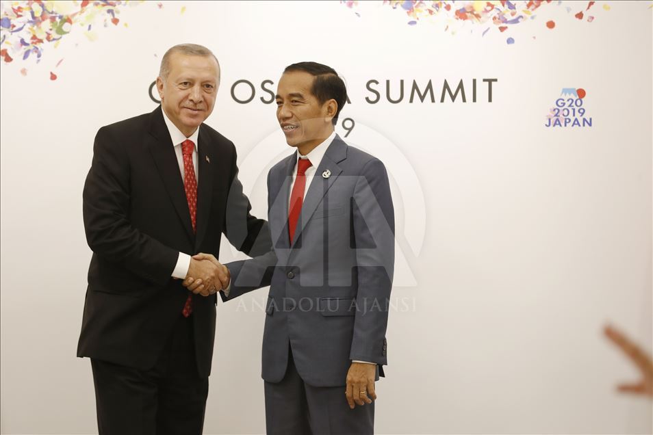 Türkiye Cumhurbaşkanı Recep Tayyip Erdoğan, G20 Liderler Zirvesi kapsamında INTEX Osaka Fuar Merkezi’nde Endonezya Devlet Başkanı Joko Widodo ile görüştü. ( Cumhurbaşkanlığı / Murat Çetinmühürdar - Anadolu Ajansı )Cumhurbaşkanlığı / Murat Çetinmühürdar