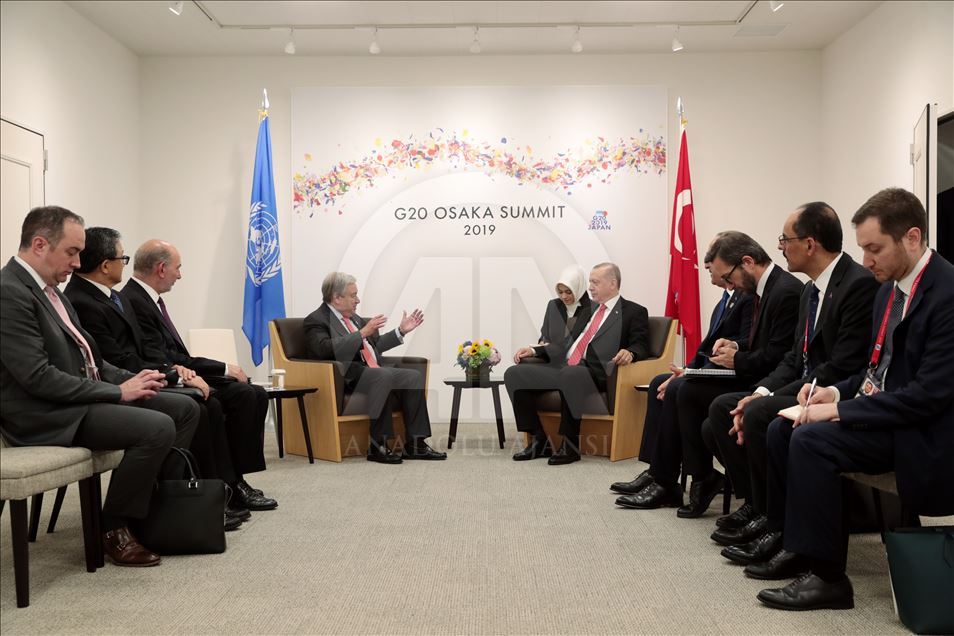 Türkiye Cumhurbaşkanı Recep Tayyip Erdoğan, G20 Liderler Zirvesi temasları kapsamında, Birleşmiş Milletler (BM) Genel Sekreteri Antonio Guterres'i kabul etti. ( Cumhurbaşkanlığı / Murat Çetinmühürdar - Anadolu Ajansı )Cumhurbaşkanlığı / Murat Çetinmühürdar