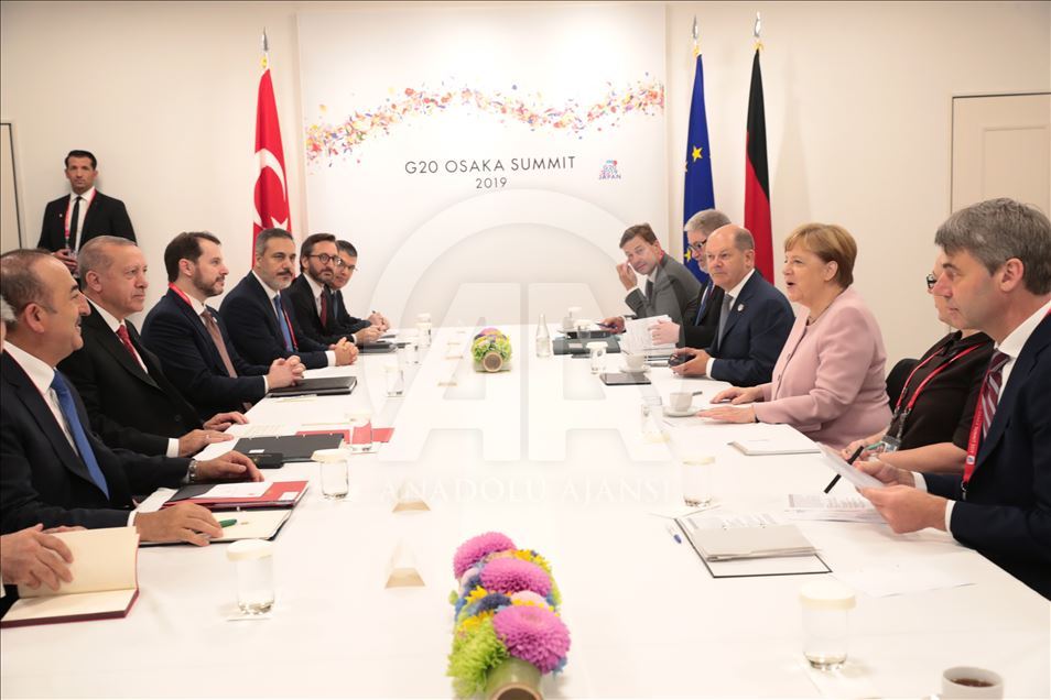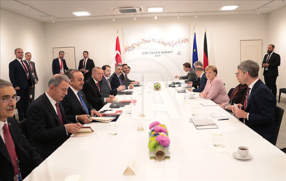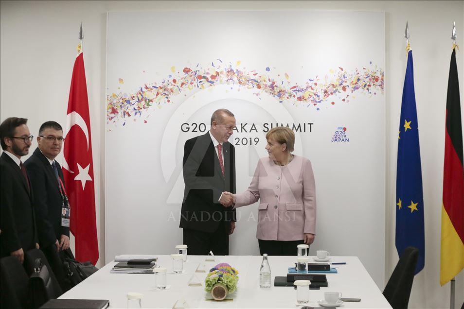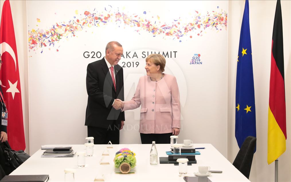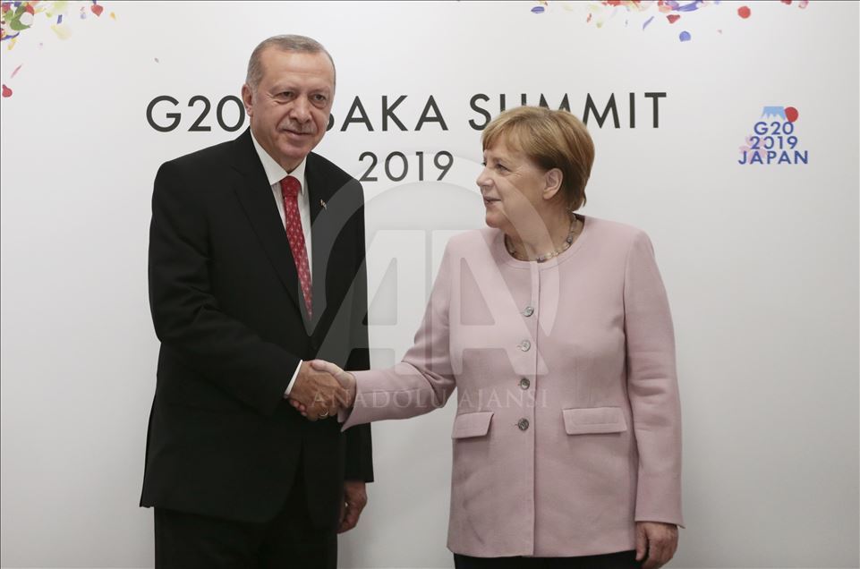 Türkiye Cumhurbaşkanı Recep Tayyip Erdoğan G20 Osaka Liderler Zirvesi kapsamında, Almanya Başbakanı Angela Merkel'i kabul etti. ( Metin Aktas - Anadolu Ajansı )Metin Aktas