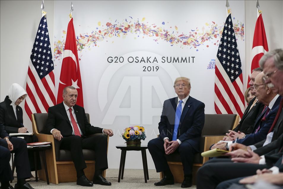 Türkiye Cumhurbaşkanı Recep Tayyip Erdoğan, G20 Osaka Liderler Zirvesi kapsamında ABD Başkanı Donald Trump ile bir araya geldi. ( Metin Aktas - Anadolu Ajansı )Metin Aktas