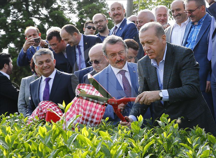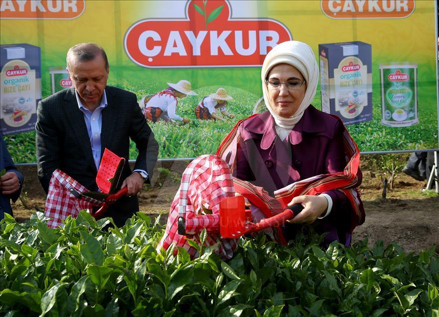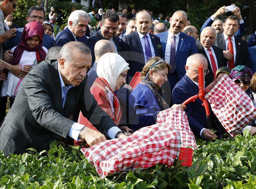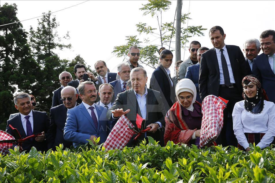 Cumhurbaşkanı Recep Tayyip Erdoğan, eşi Emine Erdoğan ile Rize'deki Ziraat Çay Bahçesi'ni ziyaret ederek çay hasadı yaptı.
