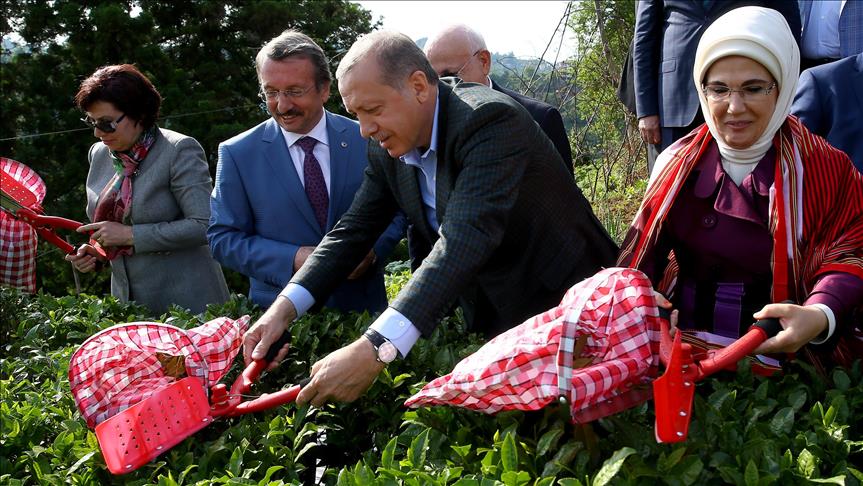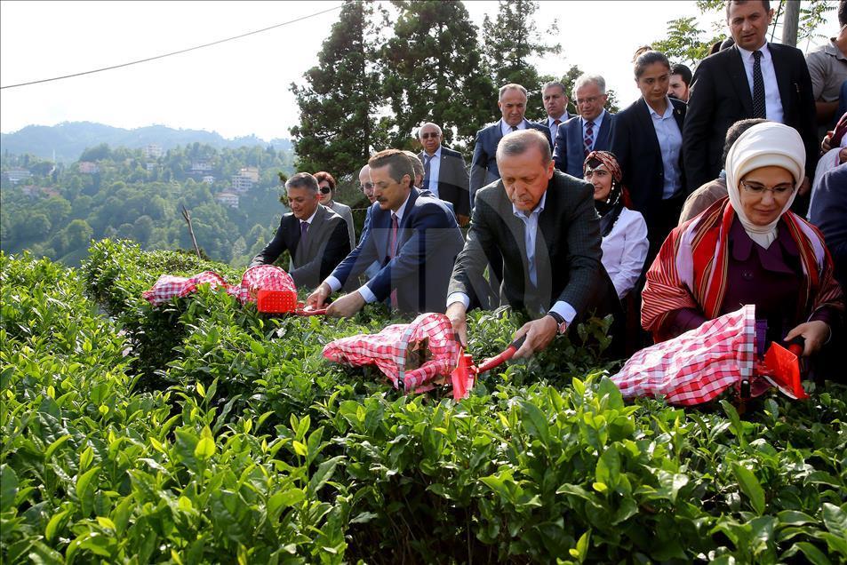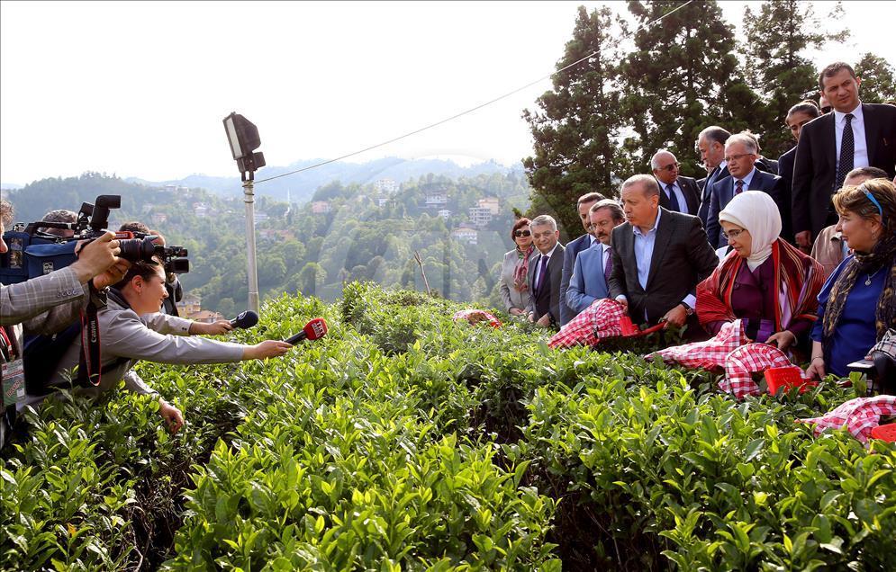 Cumhurbaşkanı Recep Tayyip Erdoğan, eşi Emine Erdoğan ile Rize'deki Ziraat Çay Bahçesi'ni ziyaret ederek çay hasadı yaptı. Cumhurbaşkanı Erdoğan, burada gazetecilere açıklamalarda bulundu. ( Kayhan Özer - Anadolu Ajansı )Kayhan Özer