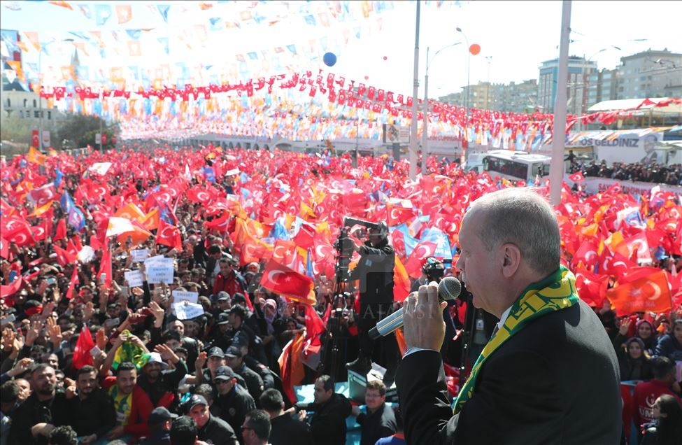Türkiye Cumhurbaşkanı ve AK Parti Genel Başkanı Recep Tayyip Erdoğan, partisinin Şanlıurfa'da düzenlediği mitinge katıldı. Programa vatandaşlar ilgi gösterdi. ( Halil Fidan - Anadolu Ajansı )Halil Fidan
