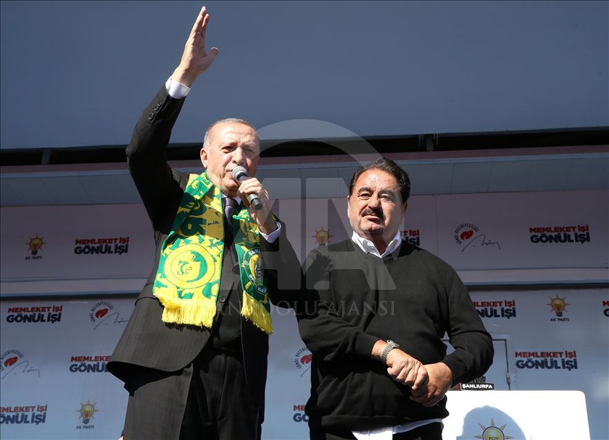 Türkiye Cumhurbaşkanı ve AK Parti Genel Başkanı Recep Tayyip Erdoğan, partisinin Şanlıurfa'da düzenlediği mitinge katıldı. Şanlıurfalı sanatçı İbrahim Tatlıses de alanda vatandaşları selamladı. ( Halil Fidan - Anadolu Ajansı )Halil Fidan