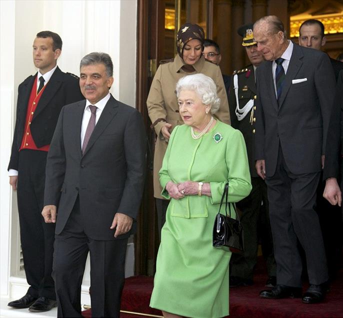 INGILTERE'YE RESMI ZIYARETTE BULUNAN CUMHURBASKANI ABDULLAH GUL VE ESI HAYRUNNISA GUL, BUCKINGHAM SARAYI'NDAN AYRILDI. GUL CIFTINI, INGILTERE KRALICESI 2. ELIZABETH VE ESI EDINBURGH DUKU PHILIP UGURLADI. (ANADOLU AJANSI - YUNUS KAYMAZ) (20111124)YUNUS KAYMAZ