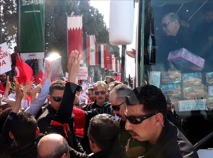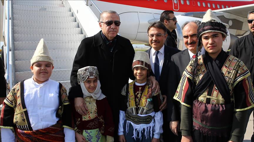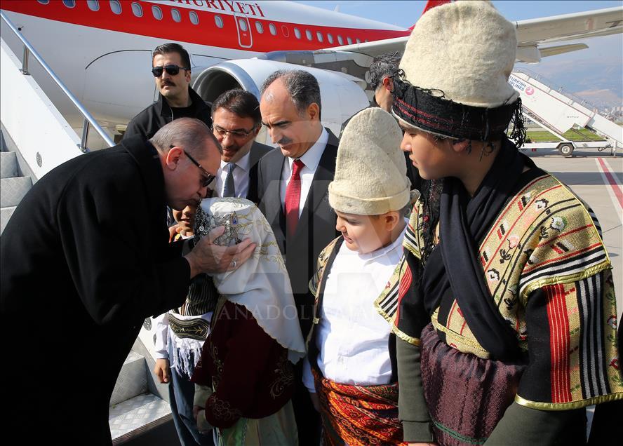 Cumhurbaşkanı ve AK Parti Genel Başkanı Recep Tayyip Erdoğan, partisinin “6. Olağan İl Kongresi”ne katılmak üzere Kahramanmaraş’a geldi. Erdoğan'ı havaalanında yöresel kıyafetler giymiş çocuklar tarafından karşılandı.