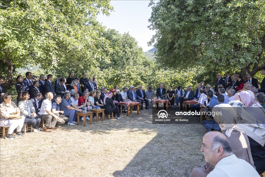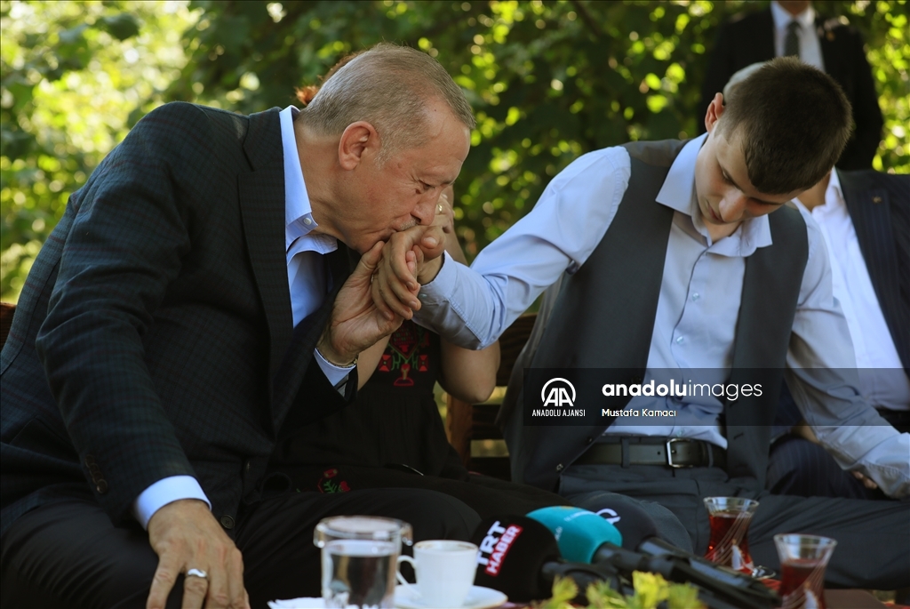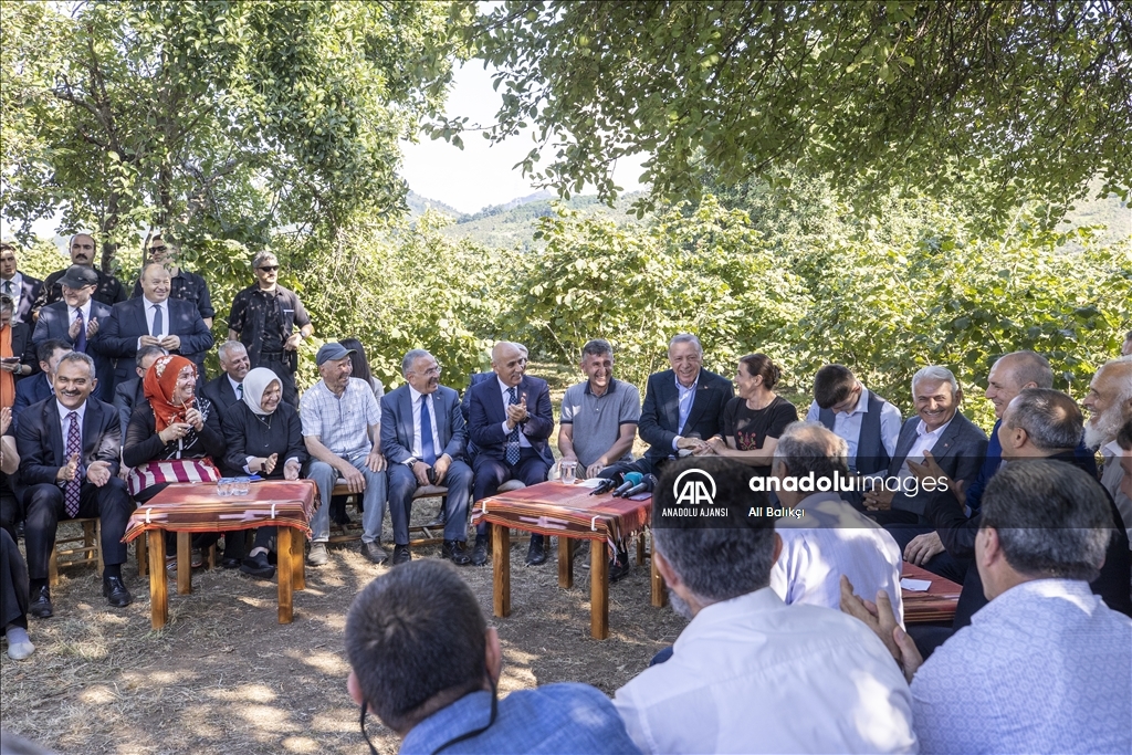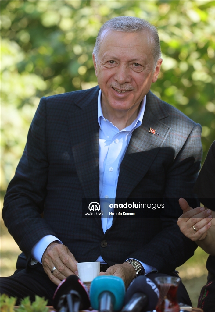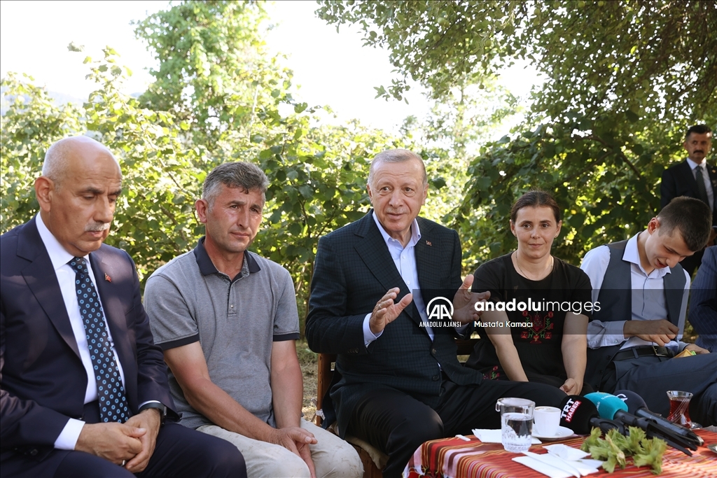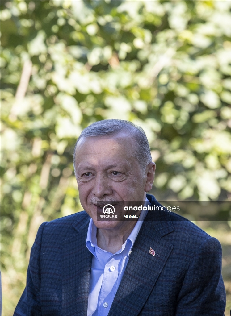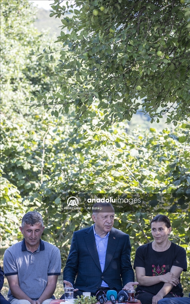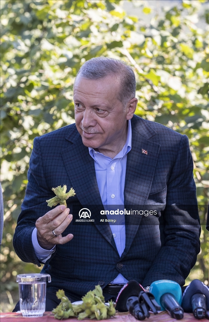 Cumhurbaşkanı Recep Tayyip Erdoğan, Ordu'daki temasları kapsamında fındık üreticisi bir aileyi ziyaret etti. Cumhurbaşkanı Erdoğan, fındık bahçesinde aileyle bir süre sohbet etti.