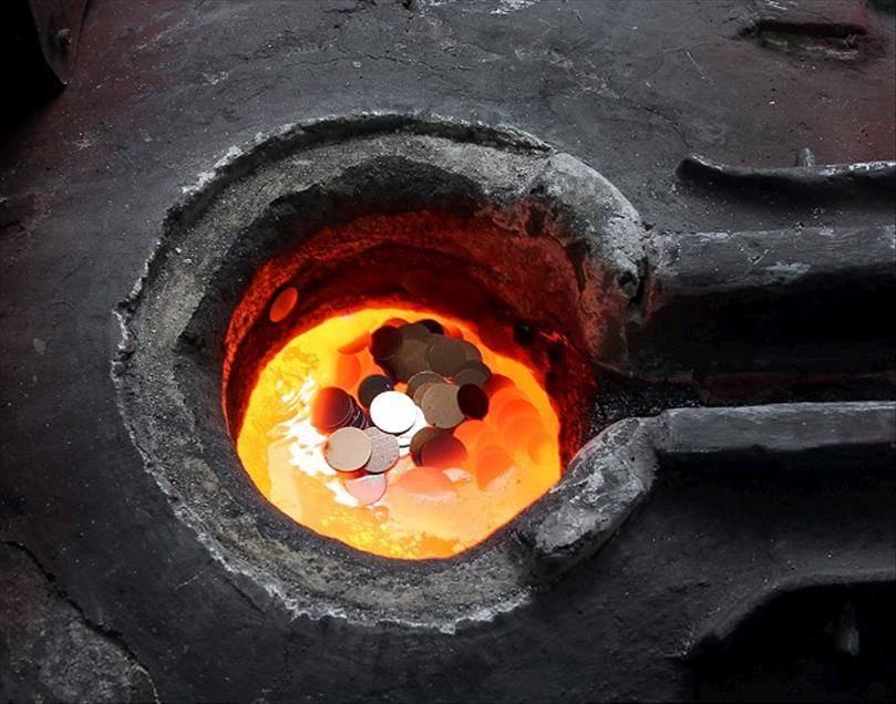 TURKIYE'DE 86 YILLIK GECMISE SAHIP CUMHURIYET ALTINI, TARIHI ITIBARIYLE TURKIYE CUMHURIYETI KAGIT PARALARINI GERIDE BIRAKIRKEN, VATANDASLARIN YATIRIM VE OZEL GUNLERINDE TAKI AMACLI TERCIHLERINDE ILK SIRAKLARINDAKI YERINI DE BUGUNE KADAR KORUMAYI BASARDI. ALTIN KULCELERI VE PLAKALARI YUKSEK ISI FIRINLARINDA ERITILEREK SIVI HALE DONUSTURULUYOR. (ANADOLU AJANSI / OKTAY CILESIZ) (20111104)OKTAY CILESIZ