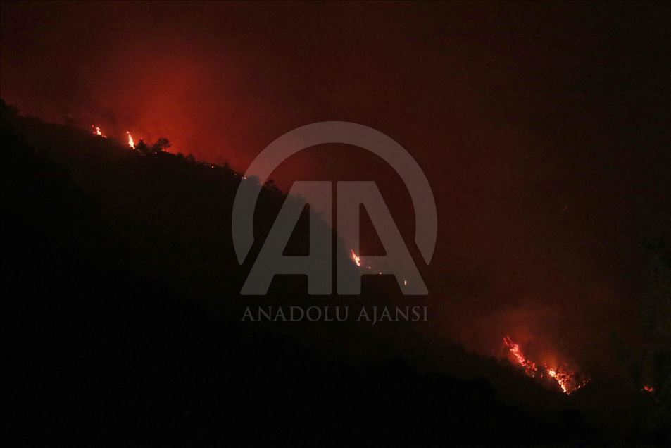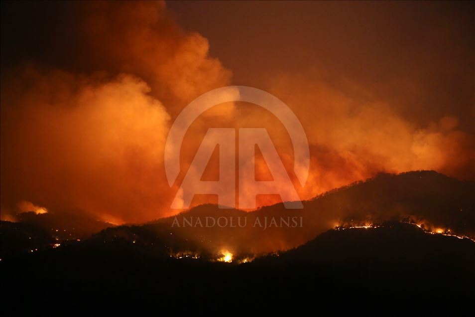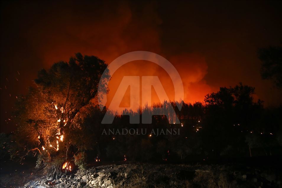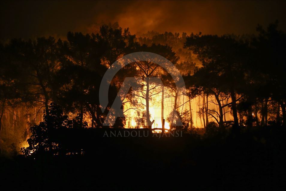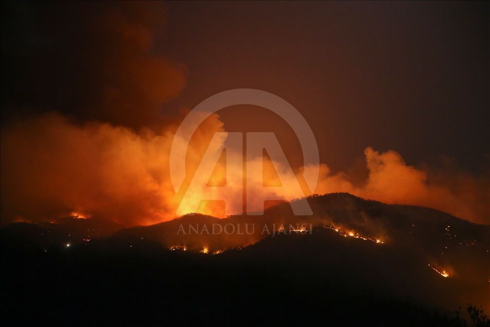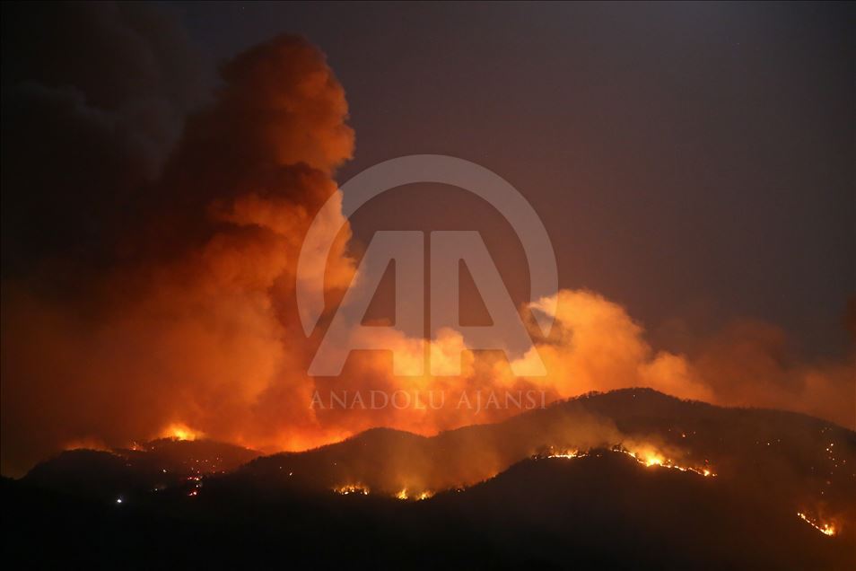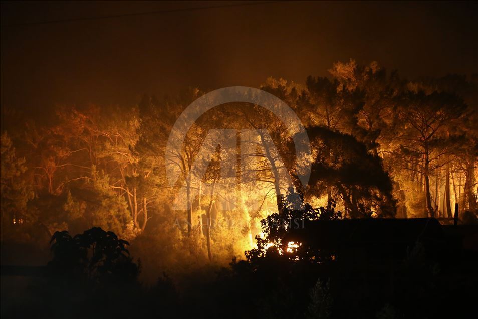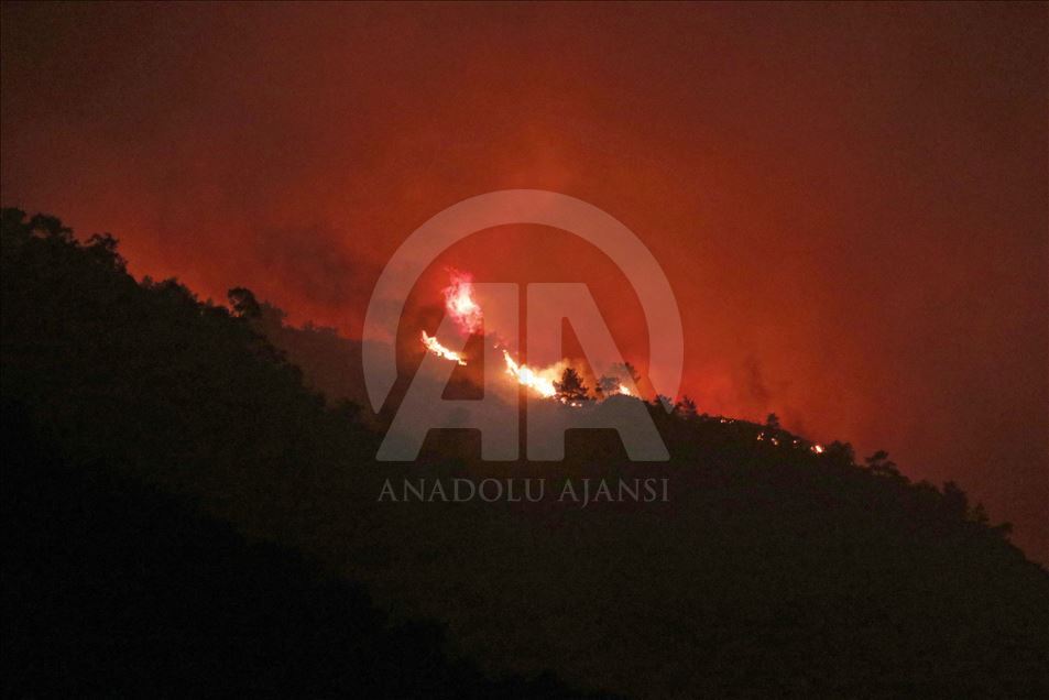 Muğla'nın Dalaman ilçesinde çıkan yangını söndürme çalışmaları gece de devam ediyor. Dalaman'da çıkan ve Fethiye ilçesine kadar yayılan yangına müdahale sürüyor ( Ali Rıza Akkır - Anadolu Ajansı )Ali Rıza Akkır