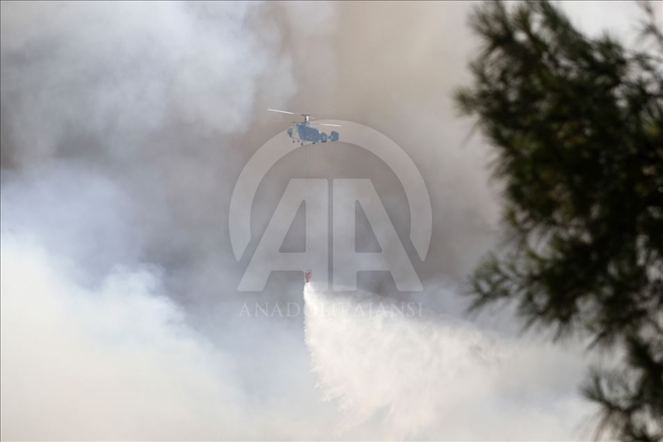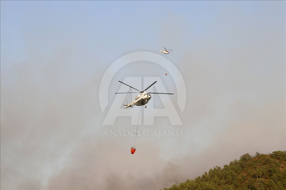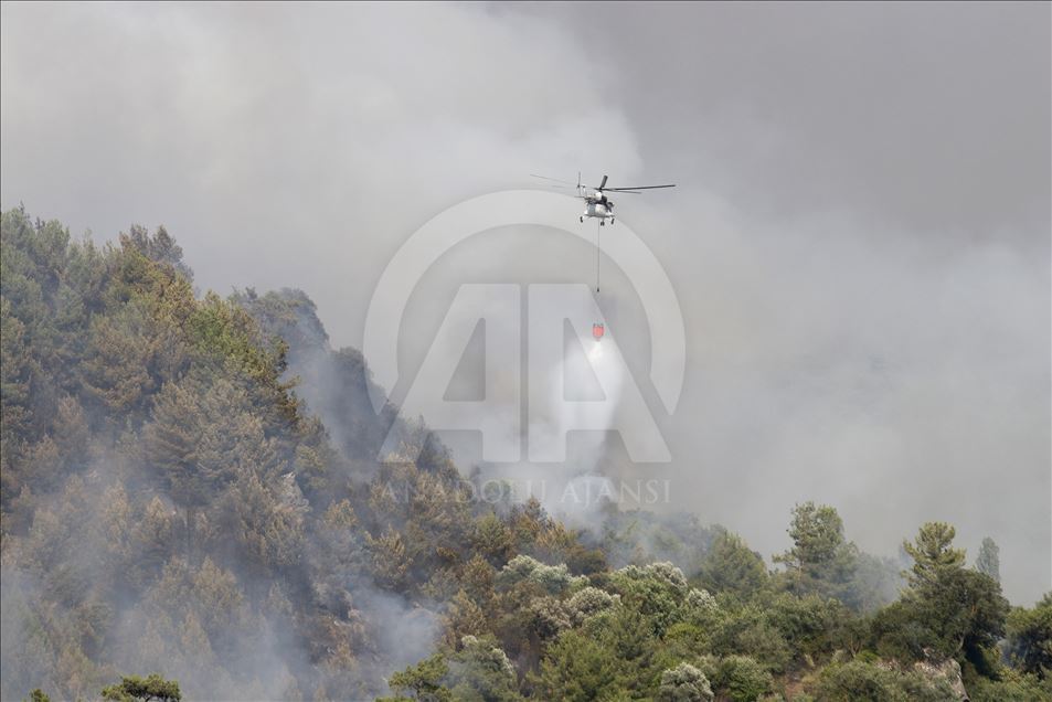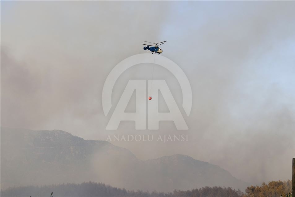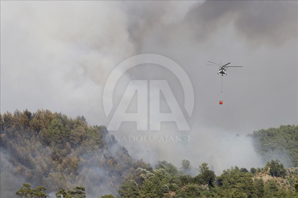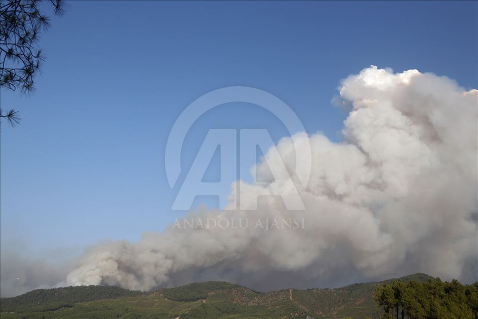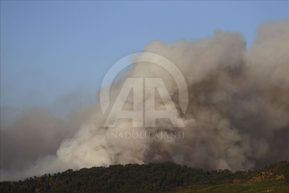 Muğla'nın Dalaman ilçesinde çıkan yangını söndürme çalışmaları devam ediyor. Rüzgar nedeniyle yayılan alevler Fethiye ilçesine bağlı Göcek Mahallesi’ne ulaştı. ( Orhan Çiçek - Anadolu Ajansı )Orhan Çiçek