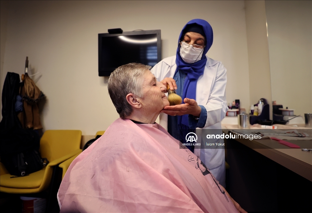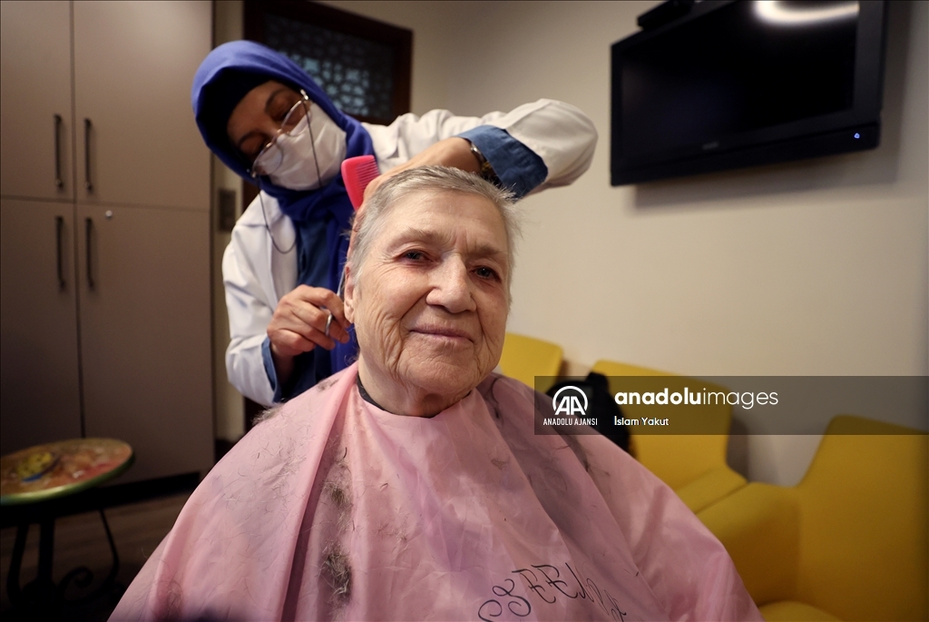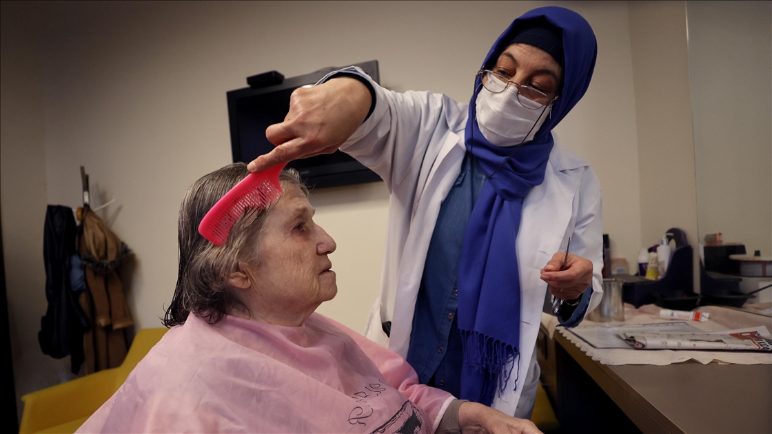 Kuaförlükten emekli olan 62 yaşındaki Sevim Zengel, Darülaceze'de 15 yıldır yaşlı ve hasta kadınların saçlarını kesip boyuyor, manikür, pedikürlerini yapıyor ve yıkanmalarına yardımcı oluyor.