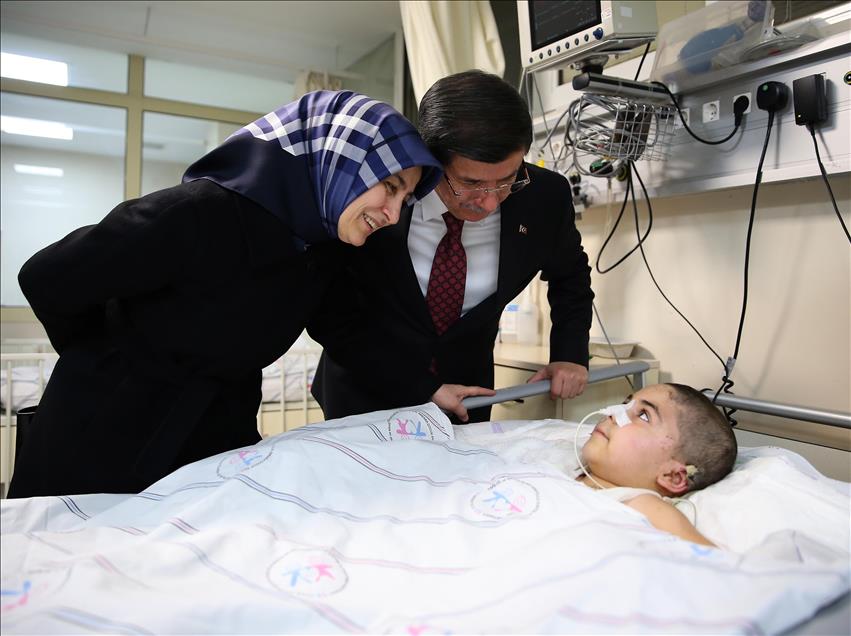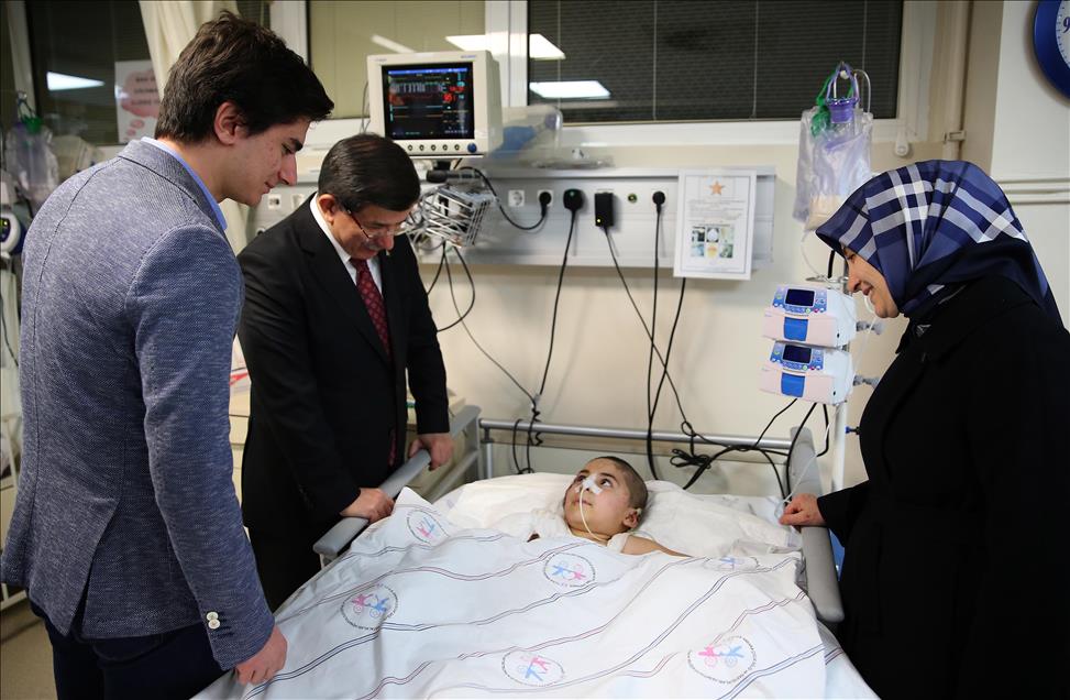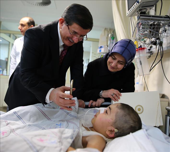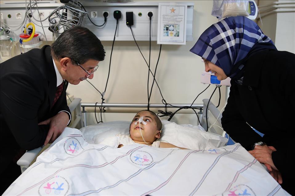 Başbakan Ahmet Davutoğlu, eşi Sare Davutoğlu ile dün akşam, Ankara Çocuk Sağlığı ve Hastalıkları Hematoloji Onkoloji Eğitim ve Araştırma Hastanesi Yanık Yoğun Bakım bölümünde tedavi altına alınan 7 yaşındaki Diyarbakırlı Said Tan'ı ziyaret etti.