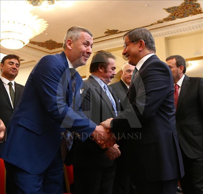 Başbakan Ahmet Davutoğlu Ankara Palas'ta gerçekleşen Kültürel Kalkınma Programına katıldı. Başbakan Davutoğlu sanatçı Yavuz Bingöl ile selamlaştı. ( Aytaç Ünal - Anadolu Ajansı )Aytaç Ünal
