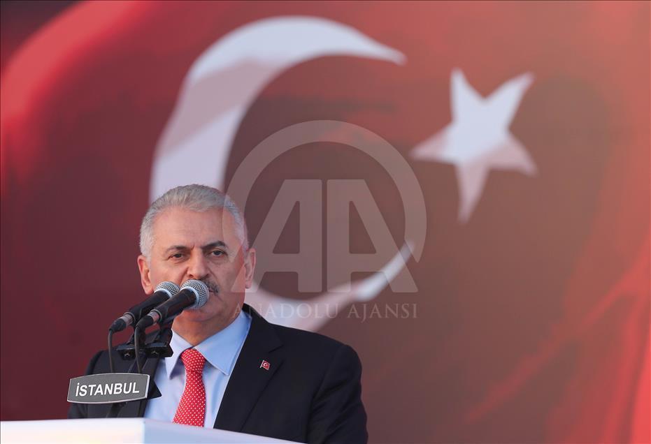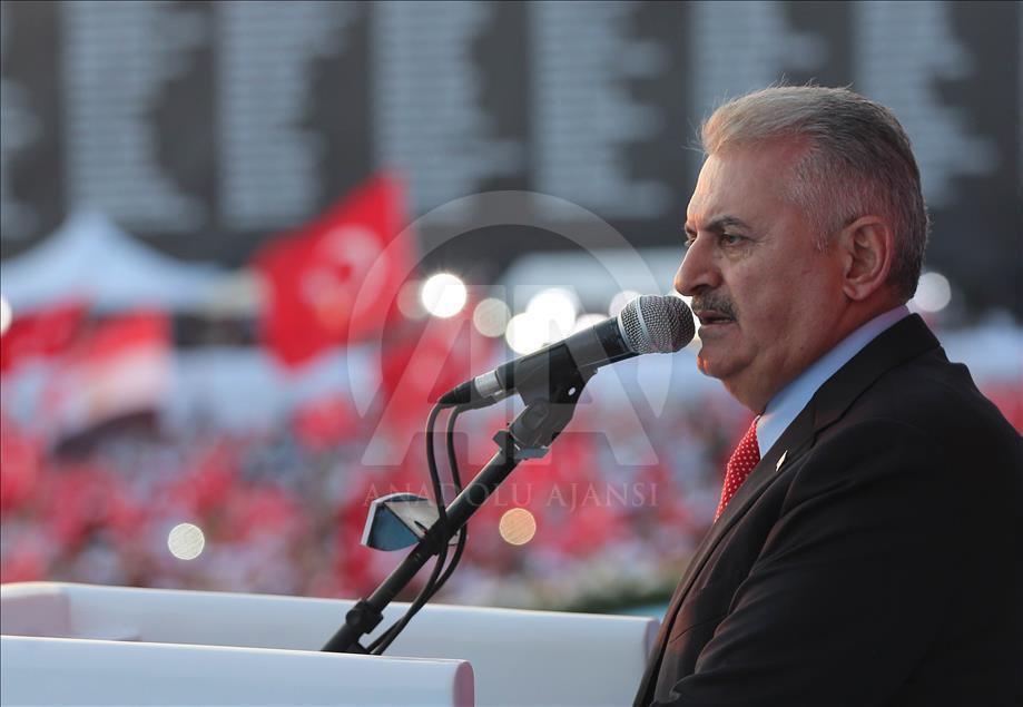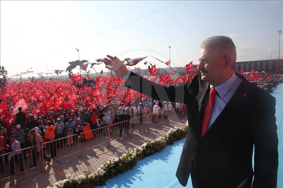 Başbakan Binali Yıldırım, Cumhurbaşkanlığı himayesinde, İstanbul Valiliği ve Büyükşehir Belediyesi desteğiyle Yenikapı Miting Alanı'nda düzenlenen "Demokrasi ve Şehitler Mitingi"ne katıldı. Başbakan Yıldırım burada bir konuşma yaptı. ( Başbakanlık/Mustafa Aktaş - Anadolu Ajansı )Başbakanlık/Mustafa Aktaş