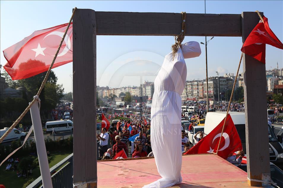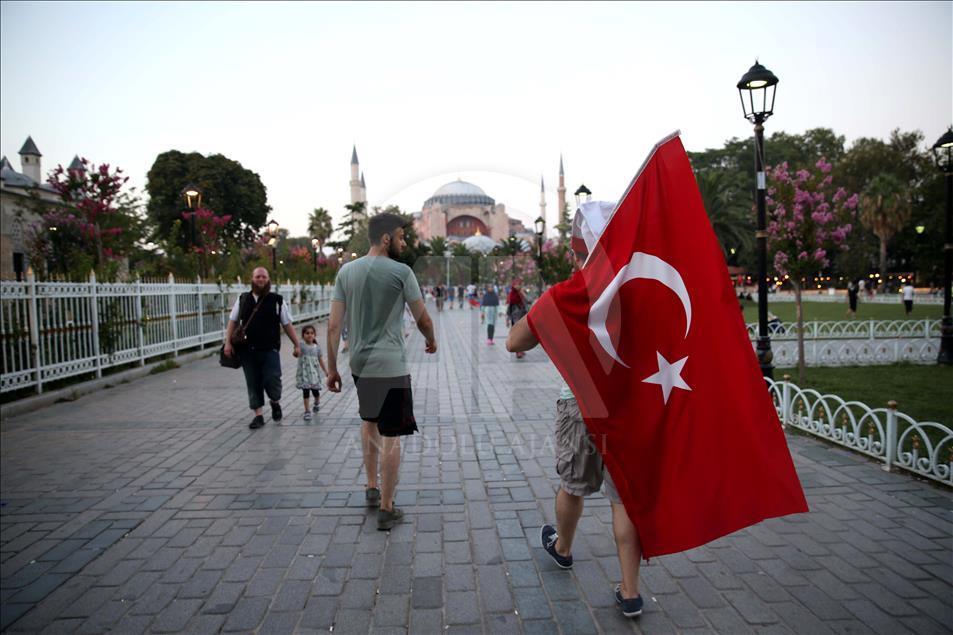 Cumhurbaşkanlığı himayesinde, İstanbul Valiliği ve Büyükşehir Belediyesi desteğiyle Yenikapı Miting Alanı'nda düzenlenen "Demokrasi ve Şehitler Mitingi" boyunca Cumhurbaşkanlığı Halkla İlişkiler Başkanlığı personelince Sultanahmet Camisinin minarelerinde Türk bayrağı dalgalandırıldı. Kimi vatandaşlar Sultanahmet Camii civarında Türk bayrakları ile dolaştı. ( Veli Gürgah - Anadolu Ajansı )Veli Gürgah