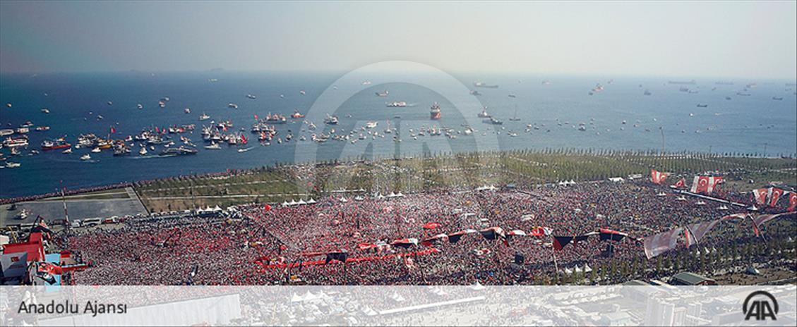 Cumhurbaşkanlığı himayesinde, İstanbul Valiliği ve İstanbul Büyükşehir Belediyesi desteğiyle düzenlenen "Demokrasi ve Şehitler Mitingi" Yenikapı Miting Alanı’nda gerçekleştirildi. Mitinge tekneler denizden destek verdi. ( Yasin Aras - Anadolu Ajansı )Yasin Aras