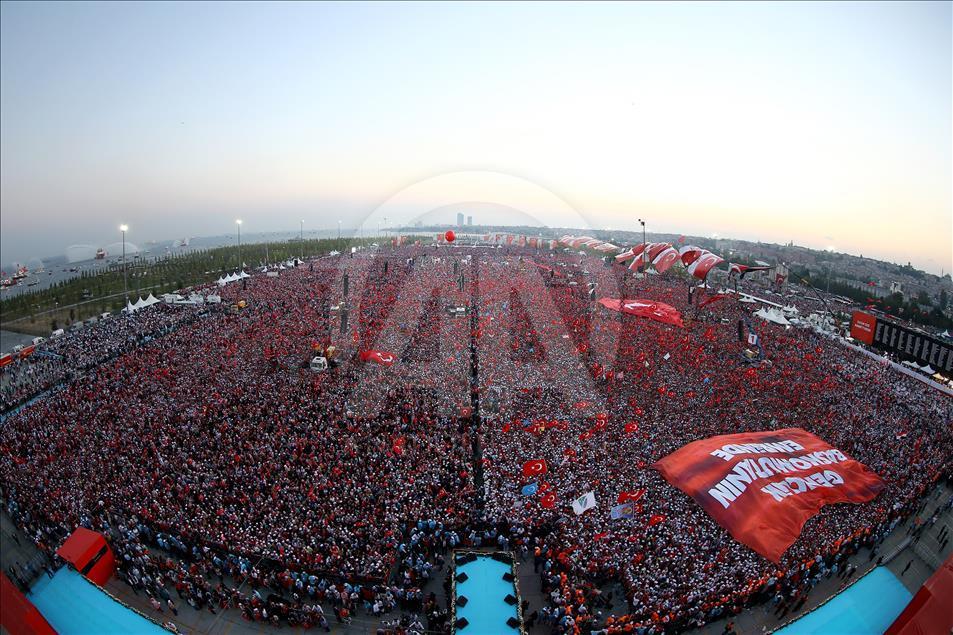 Cumhurbaşkanlığı himayesinde, İstanbul Valiliği ve Büyükşehir Belediyesi desteğiyle Yenikapı Miting Alanı'nda düzenlenen "Demokrasi ve Şehitler Mitingi. ( Abdullah Coşkun - Anadolu Ajansı )Abdullah Coşkun