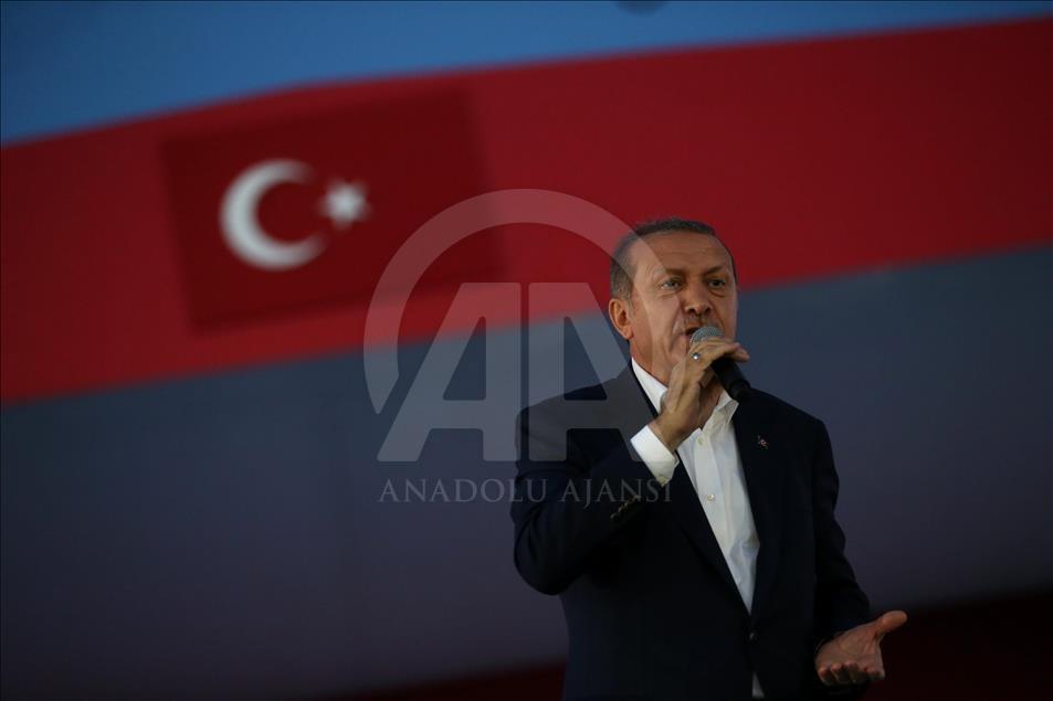 Cumhurbaşkanı Recep Tayyip Erdoğan, Cumhurbaşkanlığı himayesinde, İstanbul Valiliği ve Büyükşehir Belediyesi desteğiyle Yenikapı Miting Alanı'nda düzenlenen "Demokrasi ve Şehitler Mitingi"ne katılarak konuşma yaptı. ( Şebnem Coşkun - Anadolu Ajansı )Şebnem Coşkun