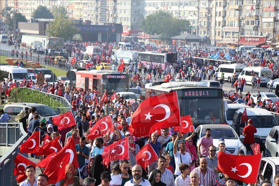 İstanbul'da vatandaşlar, Cumhurbaşkanlığı himayesinde, İstanbul Valiliği ve Büyükşehir Belediyesi desteğiyle düzenlenen "Demokrasi ve Şehitler Mitingi"ne katıldılar. ( İsa Terli - Anadolu Ajansı )İsa Terli