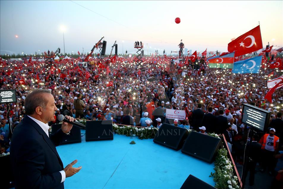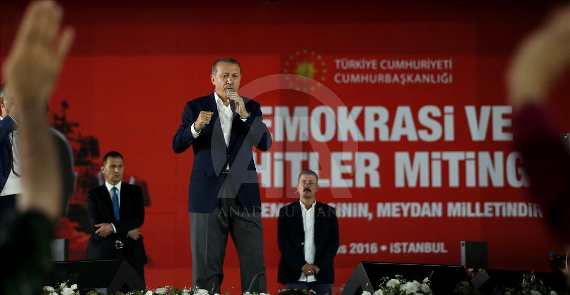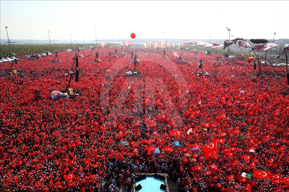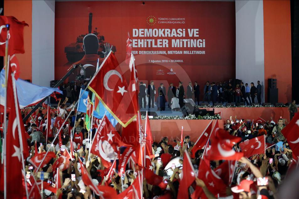 Cumhurbaşkanlığı himayesinde, İstanbul Valiliği ve Büyükşehir Belediyesi desteğiyle düzenlenen "Demokrasi ve Şehitler Mitingi" Yenikapı Miting Alanı'nda gerçekleştirildi.