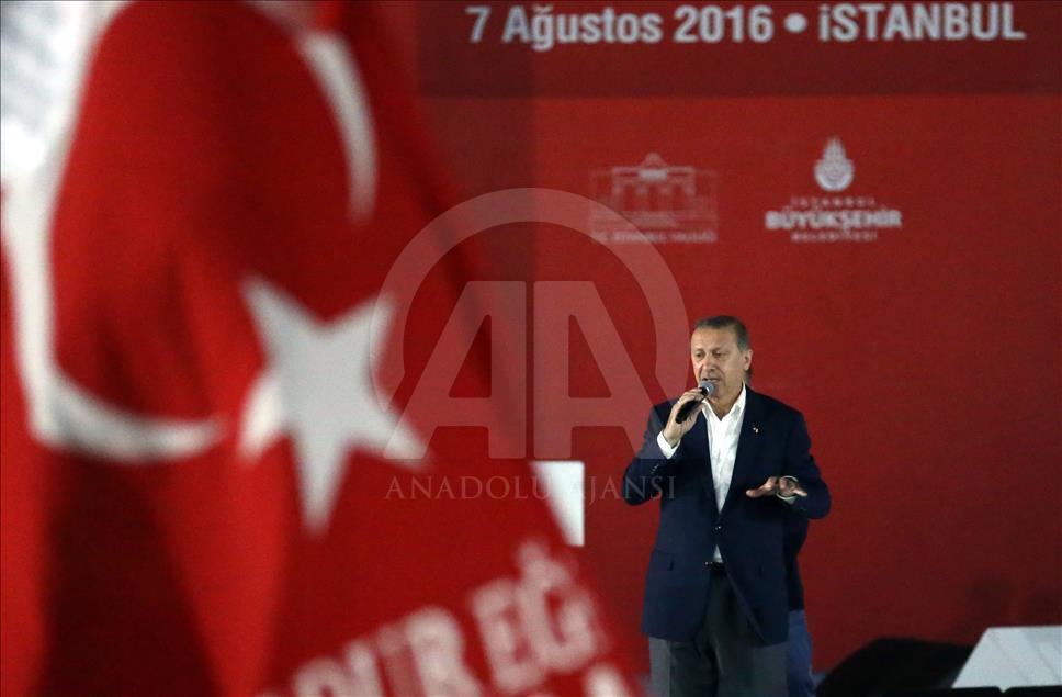 Cumhurbaşkanı Recep Tayyip Erdoğan, Cumhurbaşkanlığı himayesinde, İstanbul Valiliği ve İstanbul Büyükşehir Belediyesi desteğiyle düzenlenen "Demokrasi ve Şehitler Mitingi"ne katılarak konuşma yaptı. ( Berk Özkan - Anadolu Ajansı )Berk Özkan