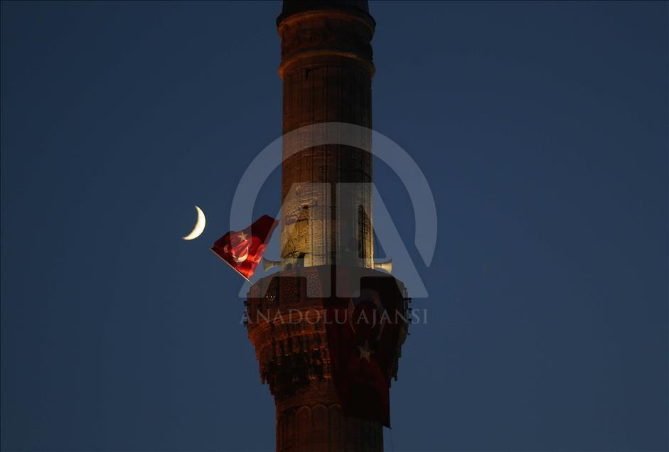 Cumhurbaşkanlığı himayesinde, İstanbul Valiliği ve Büyükşehir Belediyesi desteğiyle Yenikapı Miting Alanı'nda düzenlenen "Demokrasi ve Şehitler Mitingi" boyunca Cumhurbaşkanlığı Halkla İlişkiler Başkanlığı personelince Sultanahmet Camisinin minarelerinde Türk bayrağı dalgalandırıldı. ( Veli Gürgah - Anadolu Ajansı )Veli Gürgah
