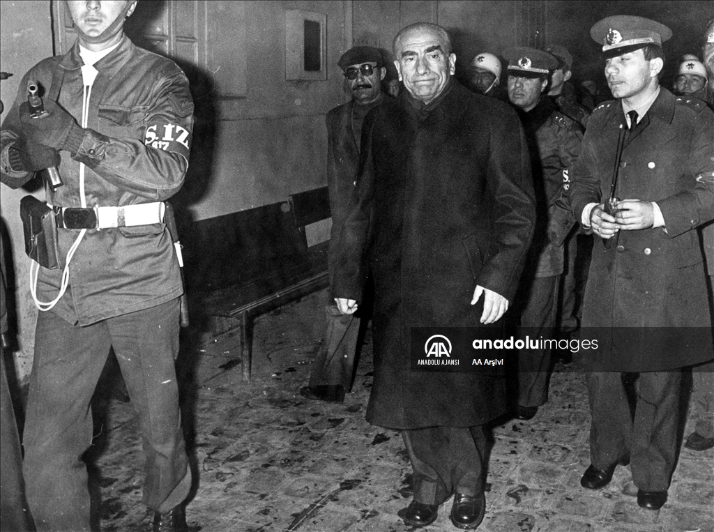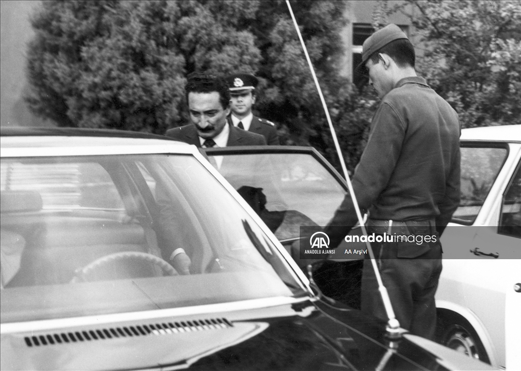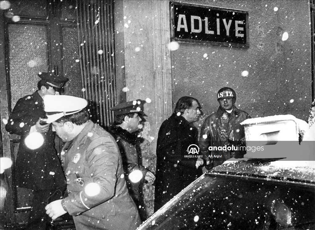 Türkiye demokrasi tarihine kara leke olarak geçen 12 Eylül 1980 darbesinin üzerinden 42 yıl geçmesine rağmen geride bıraktığı acılar ilk günkü tazeliğini koruyor. Milliyetçi Hareket Partisi (MHP) Genel Başkanı Alparslan Türkeş (ortada), 11 Aralık 1980'de Ankara Adliyesi'nde ifade vermişti. (Arşiv) ( AA Arşivi - Anadolu Ajansı )AA Arşivi