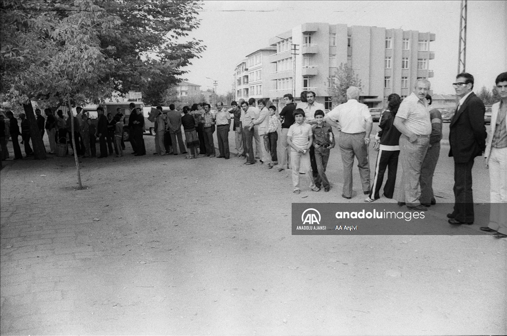 Türkiye demokrasi tarihine kara leke olarak geçen 12 Eylül 1980 darbesinin üzerinden 42 yıl geçmesine rağmen geride bıraktığı acılar ilk günkü tazeliğini koruyor. 12 Eylül 1980 sabahı temel ihtiyaçlarını karşılamak isteyen vatandaşlar, fırınların önünde uzun kuyruklar oluşturmuştu. (Arşiv) ( AA Arşivi - Anadolu Ajansı )AA Arşivi