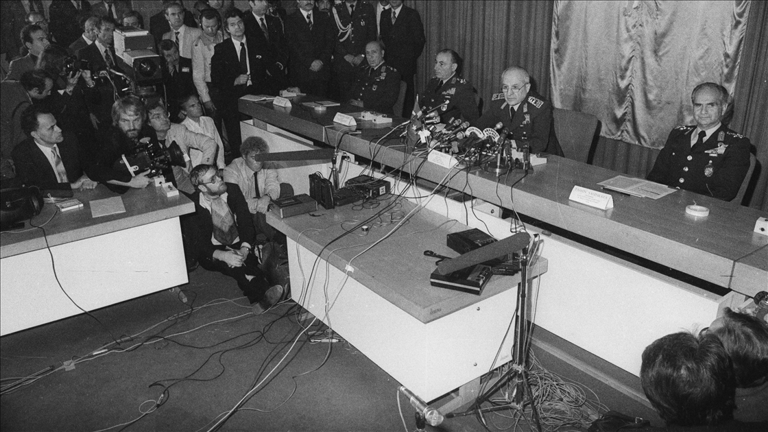 Türkiye demokrasi tarihine kara leke olarak geçen 12 Eylül 1980 darbesinin üzerinden 42 yıl geçmesine rağmen geride bıraktığı acılar ilk günkü tazeliğini koruyor. Milli Güvenlik Konseyi (MGK) Başkanı ve Genelkurmay Başkanı Orgeneral Kenan Evren (sağ 3) basına ilk açıklamasını 12 Eylül 1980'de TBMM'de yapmıştı. TBMM'deki açıklamada (sağdan sola) Deniz Kuvvetleri Komutanı Oramiral Nejat Tümer, Hava Kuvvetleri Komutanı Orgeneral Tahsin Şahinkaya, Kara Kuvvetleri Komutanı Orgeneral Nurettin Ersin ve Jandarma Genel Komutanı Orgeneral Sedat Celasun da yer almıştı. (Arşiv) ( AA Arşivi - Anadolu Ajansı )AA Arşivi